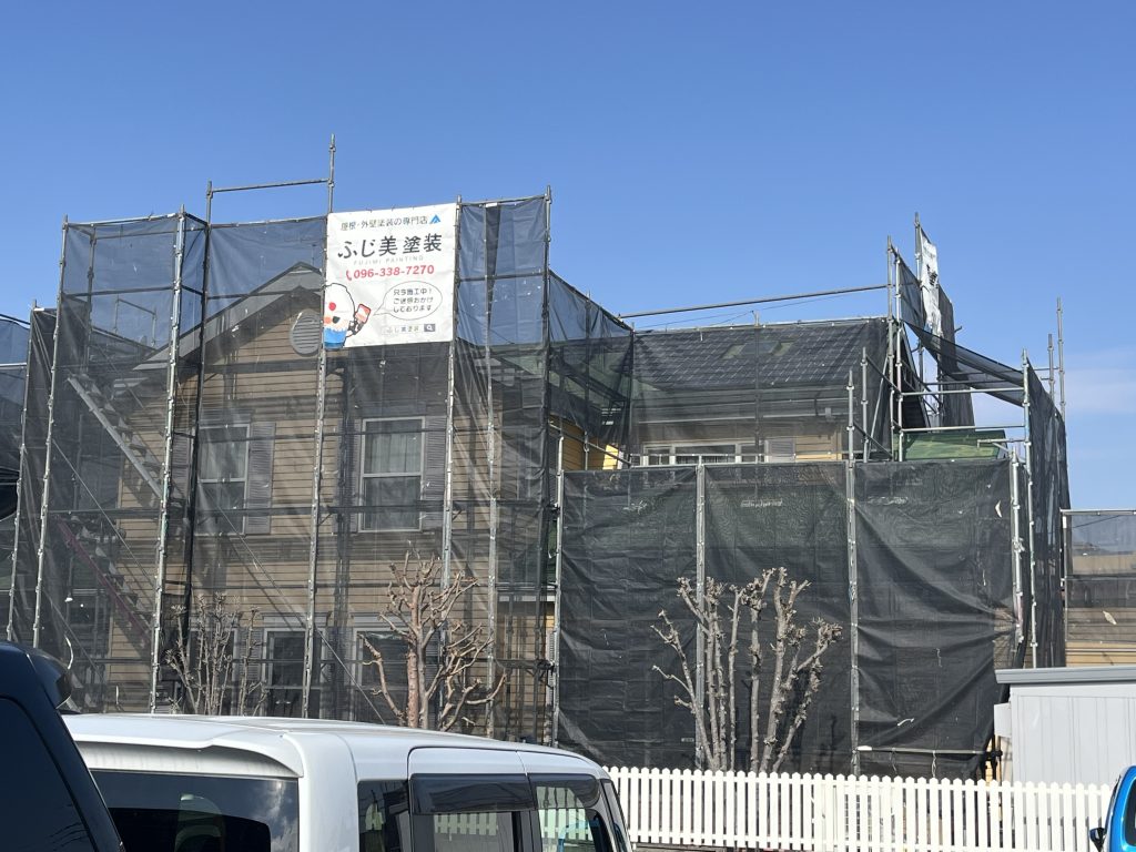 菊池郡菊陽町 N様邸 飛散防止ネット張り 2026.02.20 カテゴリー: 菊池郡菊陽町 N様邸 飛散防止ネット張り作業 大変お世話になります。本日は朝より乗り込ませて頂き飛散防止ネット張りをさせて頂きました。