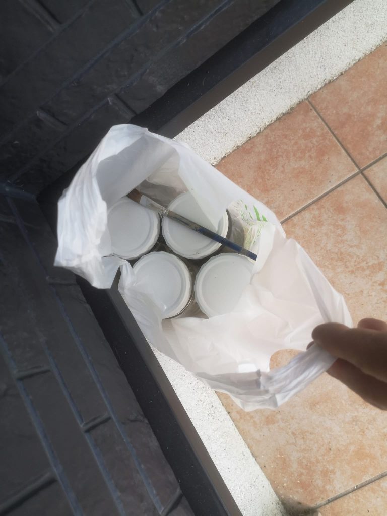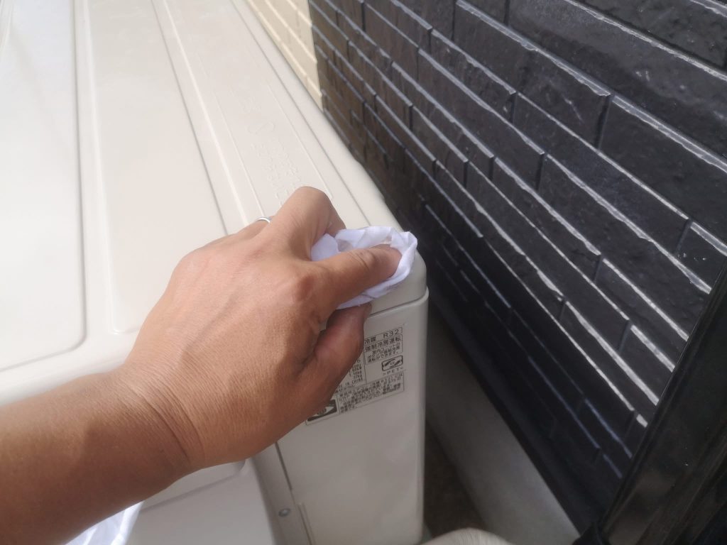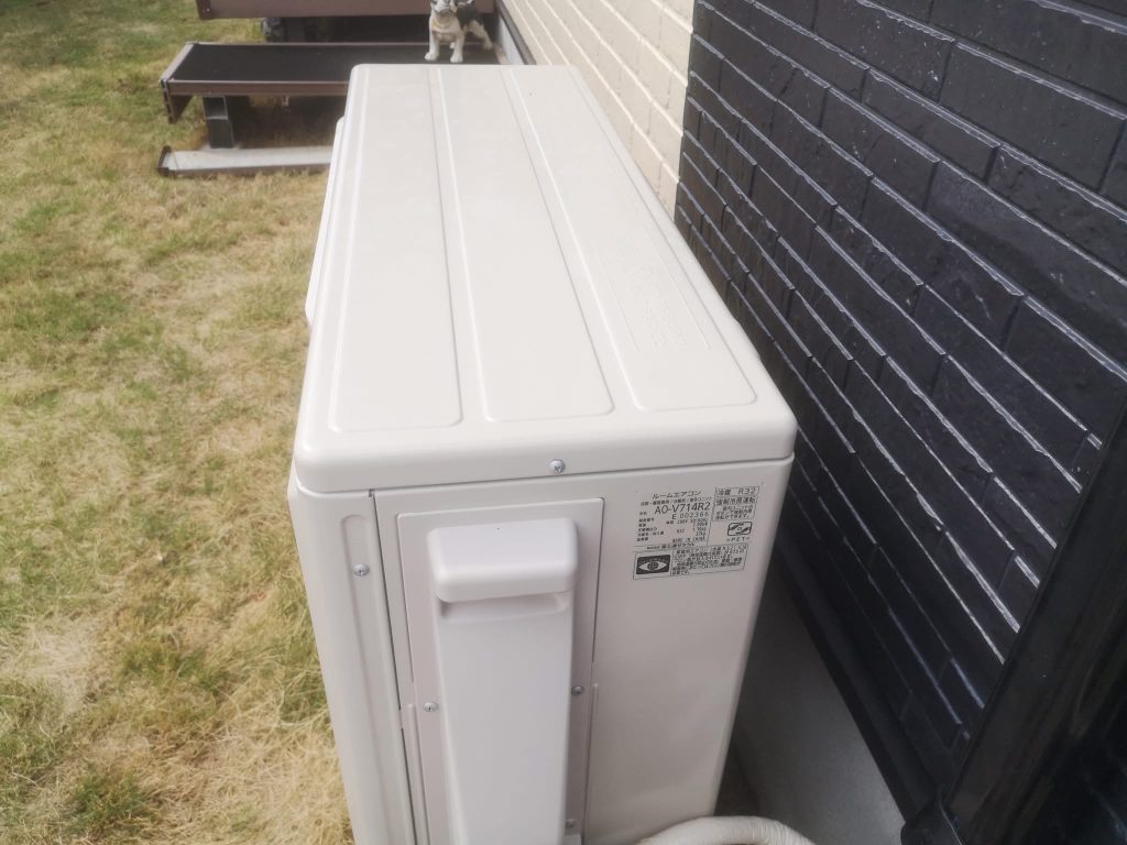 その後室外機の清掃、今回使用致しました塗料など玄関に置いております。