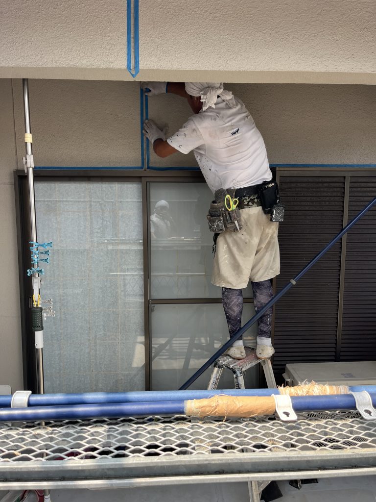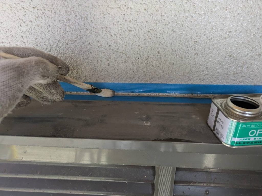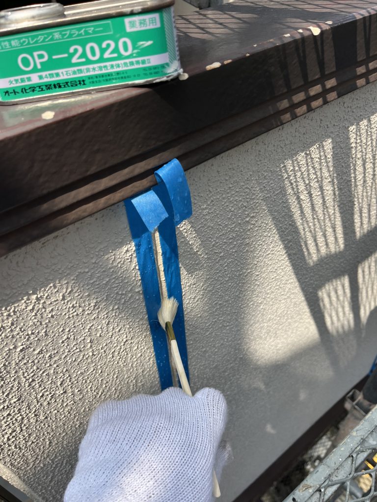 本日は朝より乗り込ませて頂き下地処理スタートしております。目地へとプライマー塗布、シーリング充填も行なっております。