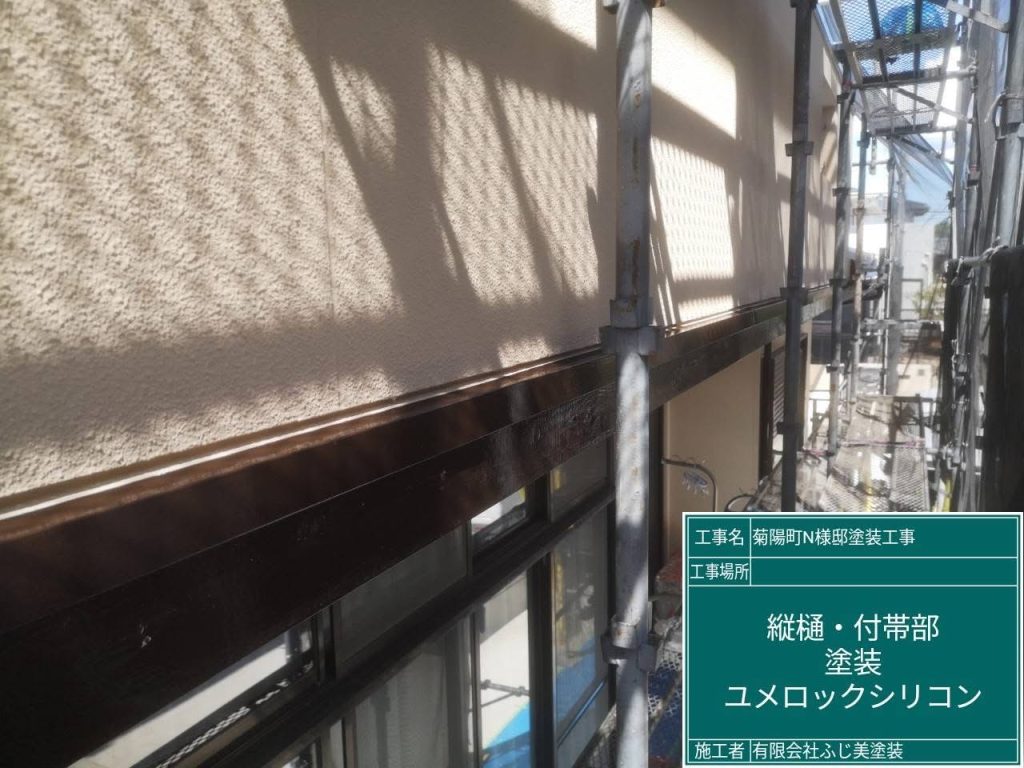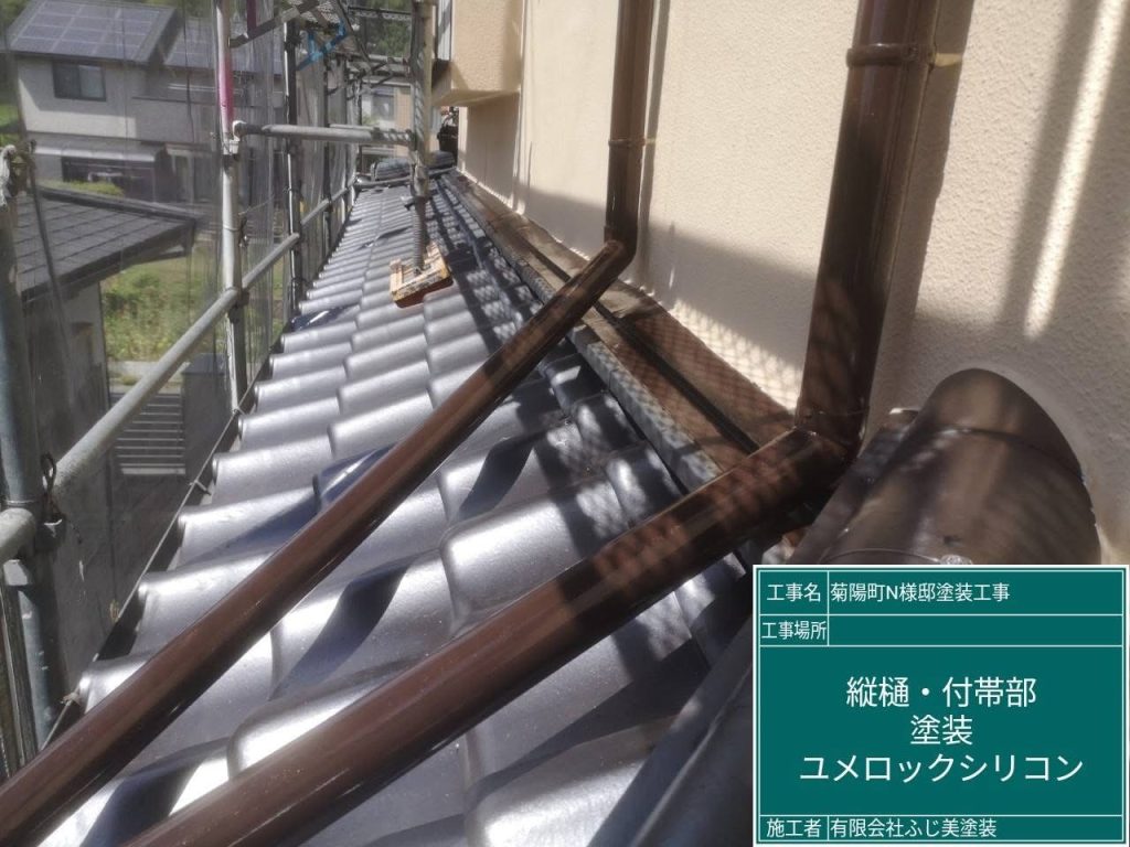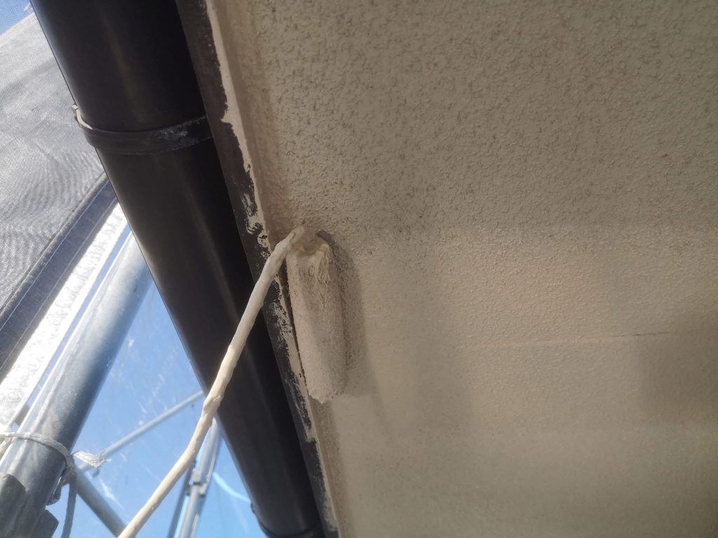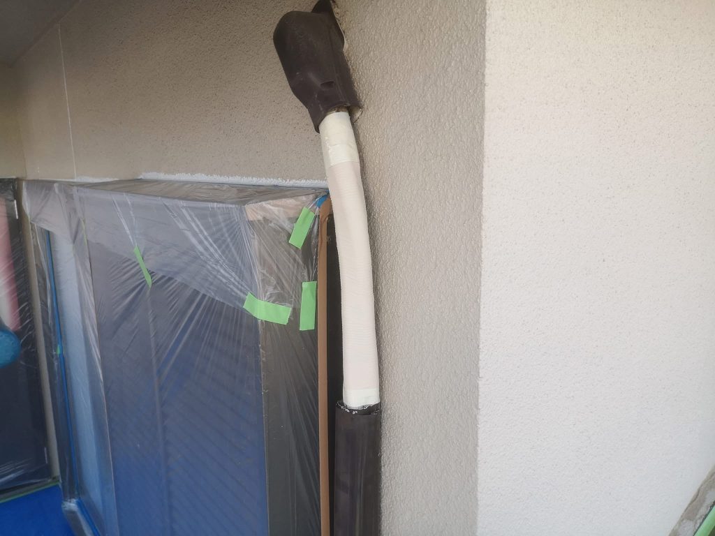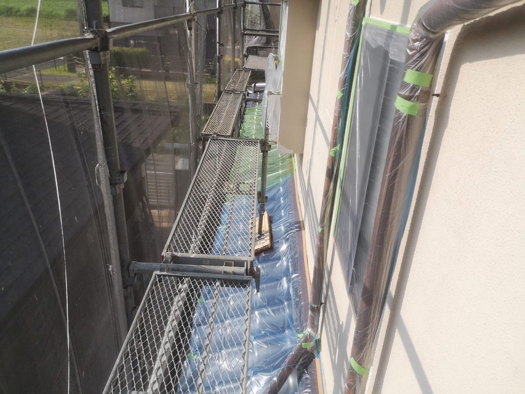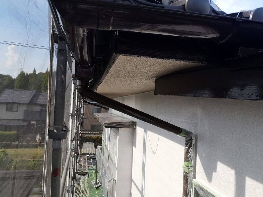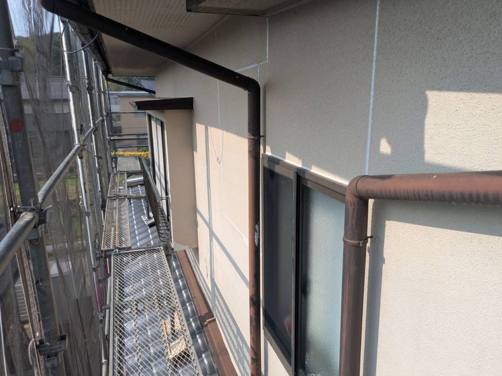 その後、竪樋塗布、マスキングバラしを行なっております。