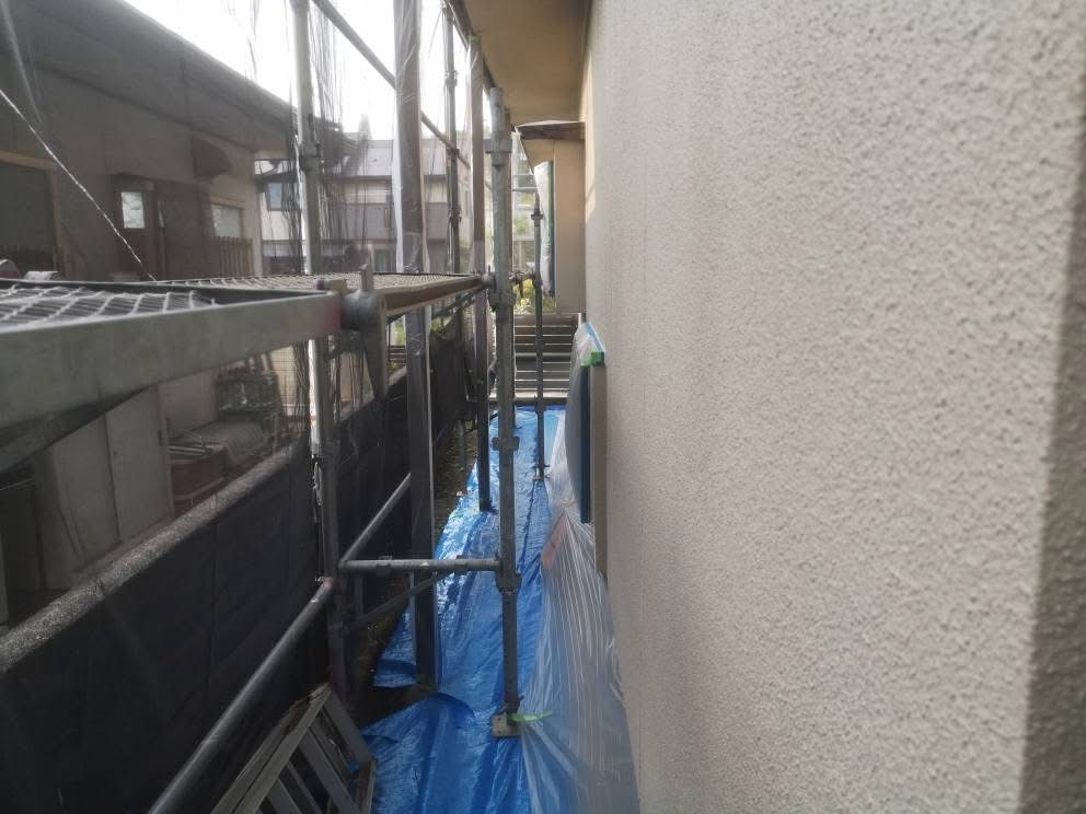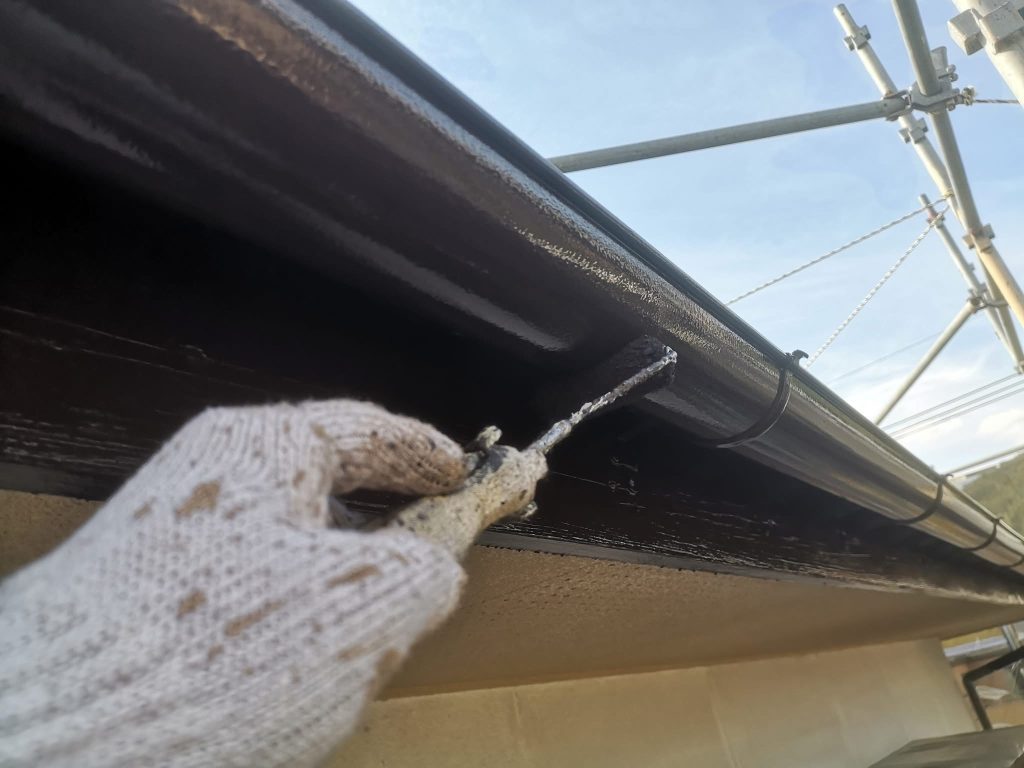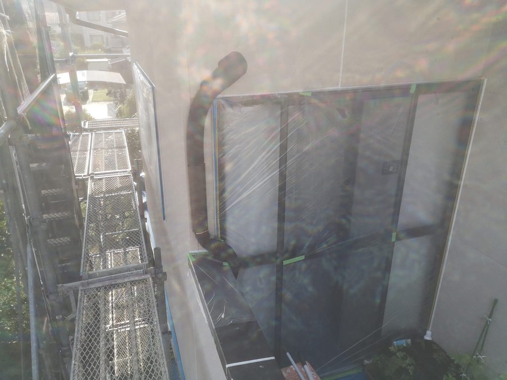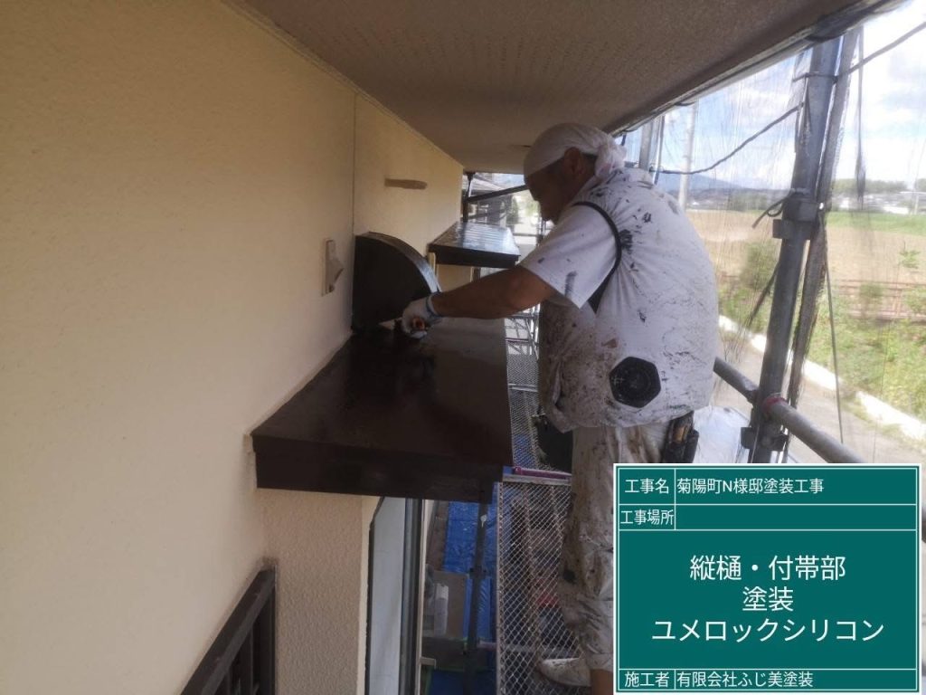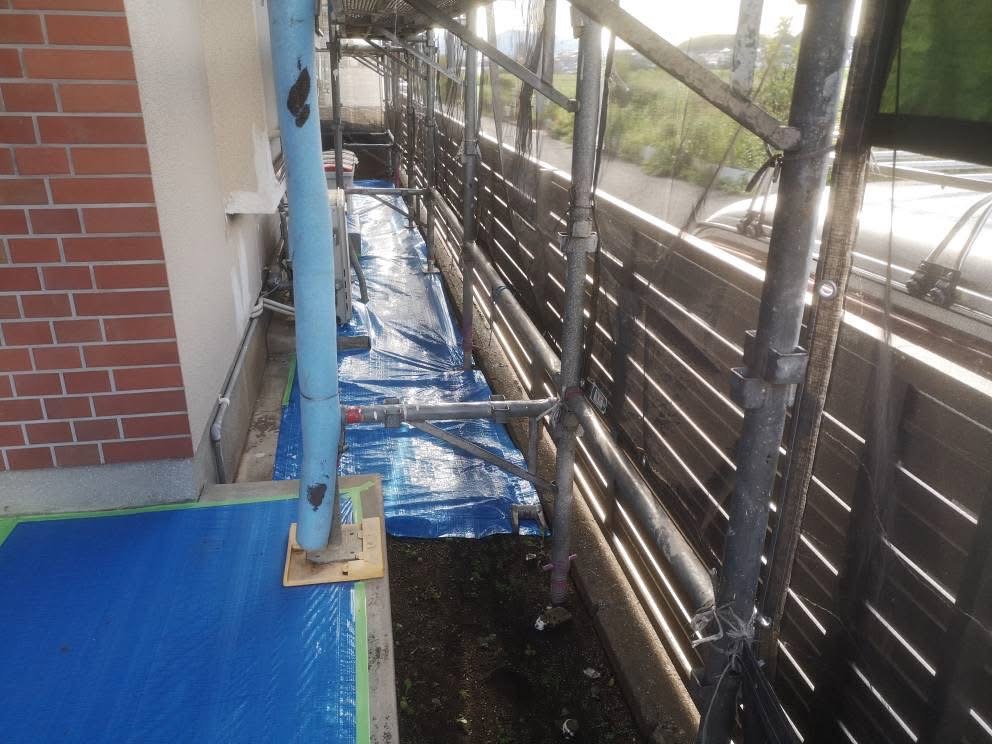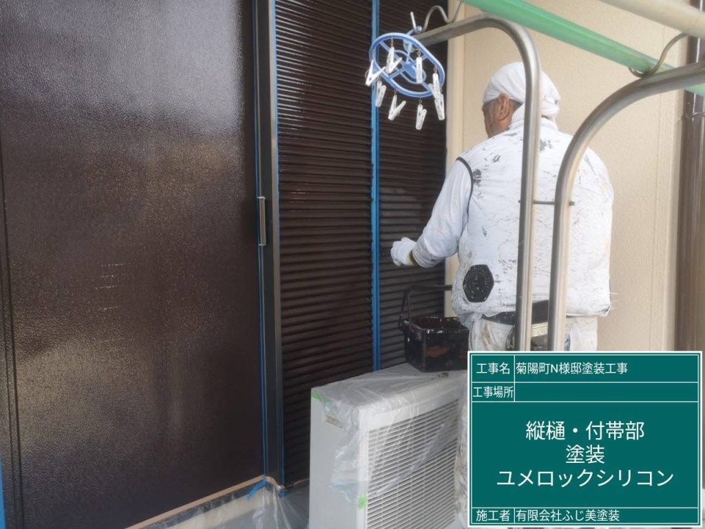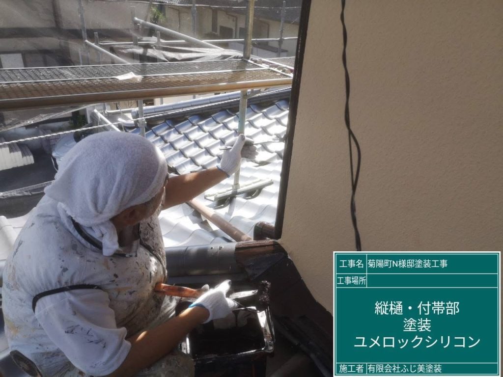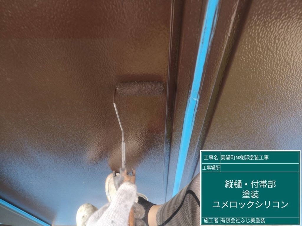 その後、竪樋塗布、マスキングバラしを行なっております。