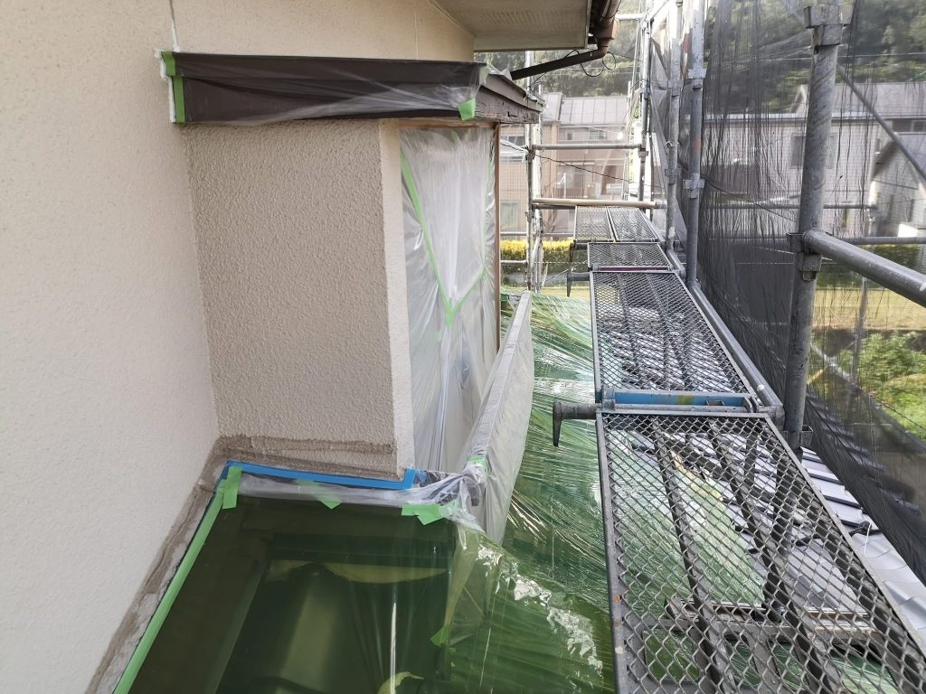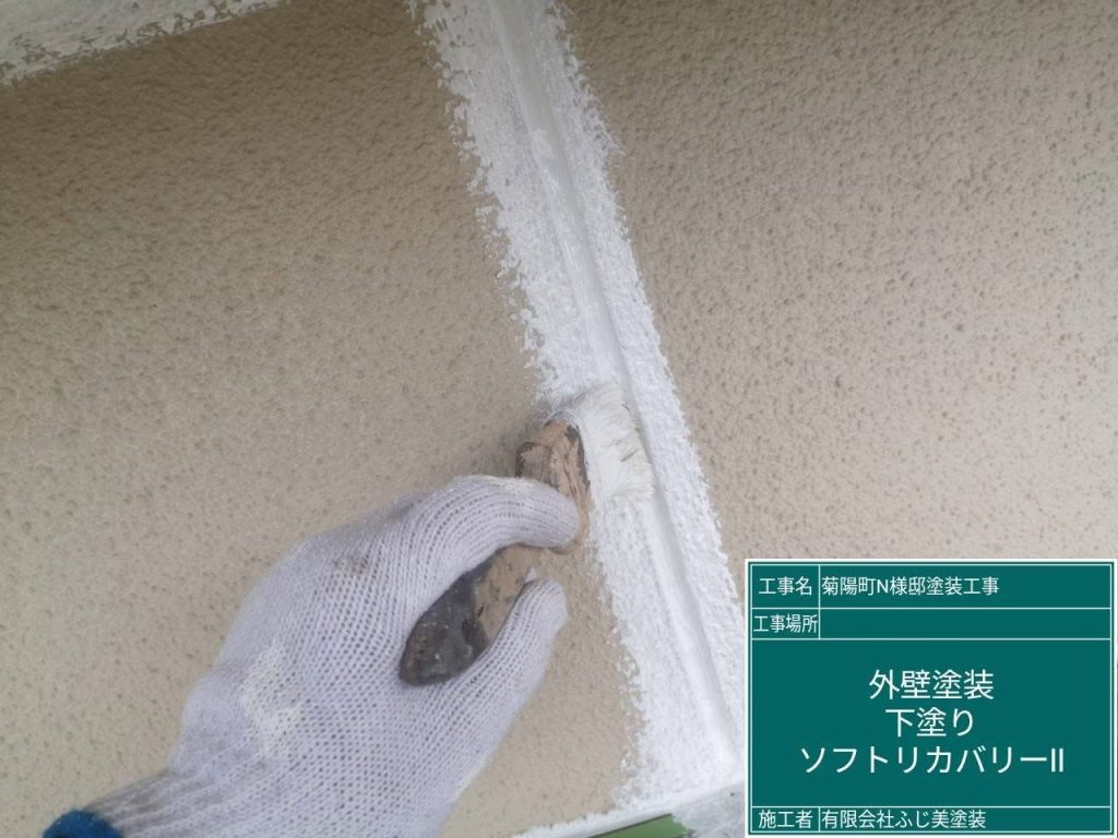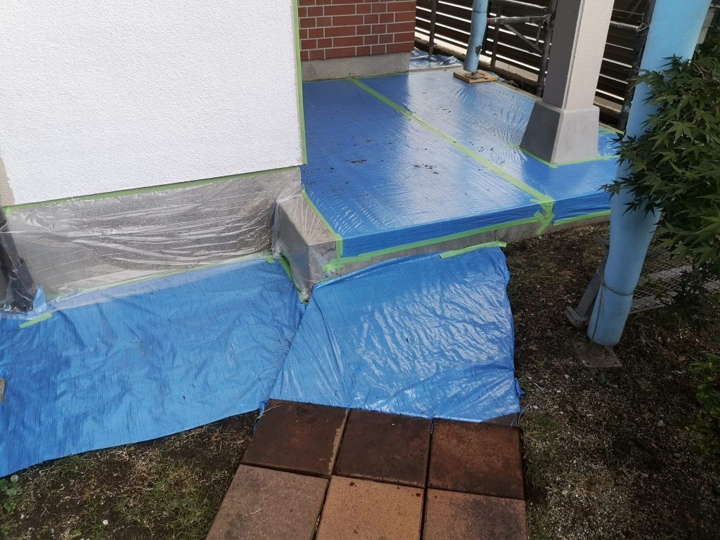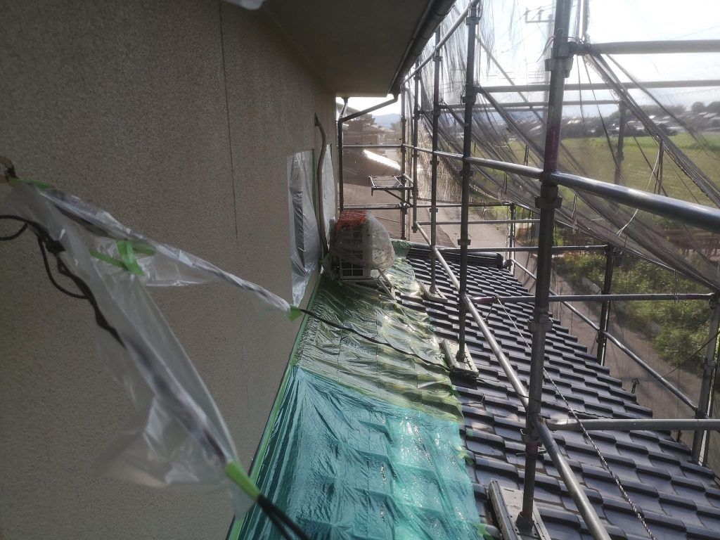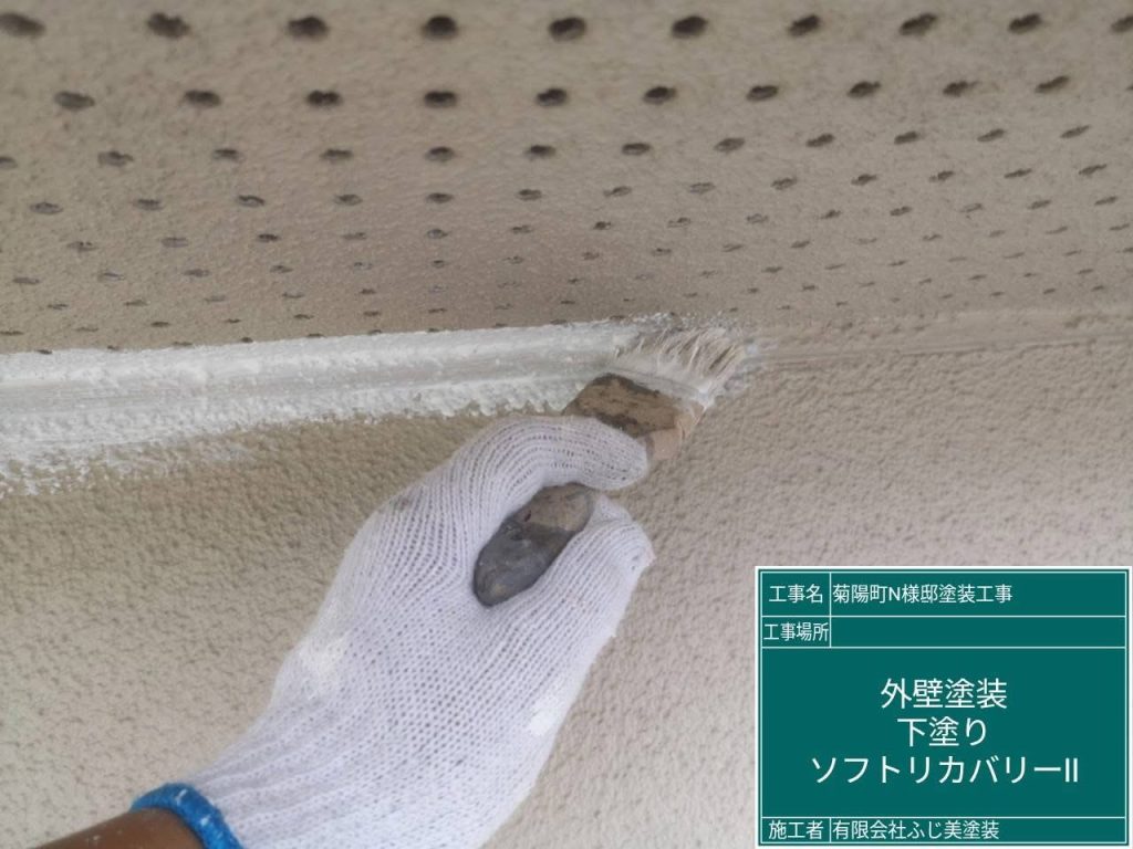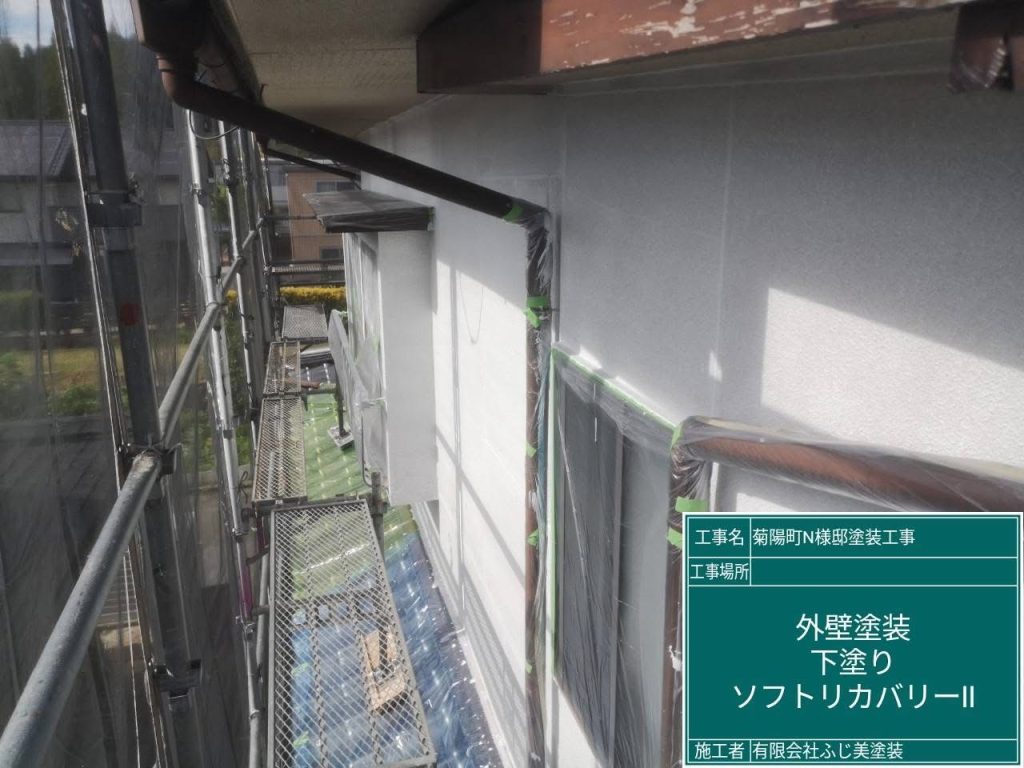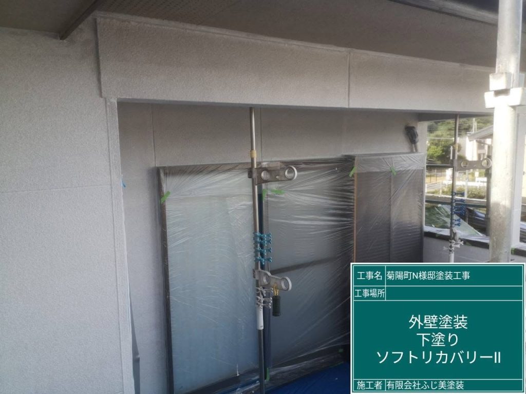合志市 N様邸 下地処理、サンプル塗料塗布、マスキングスタート