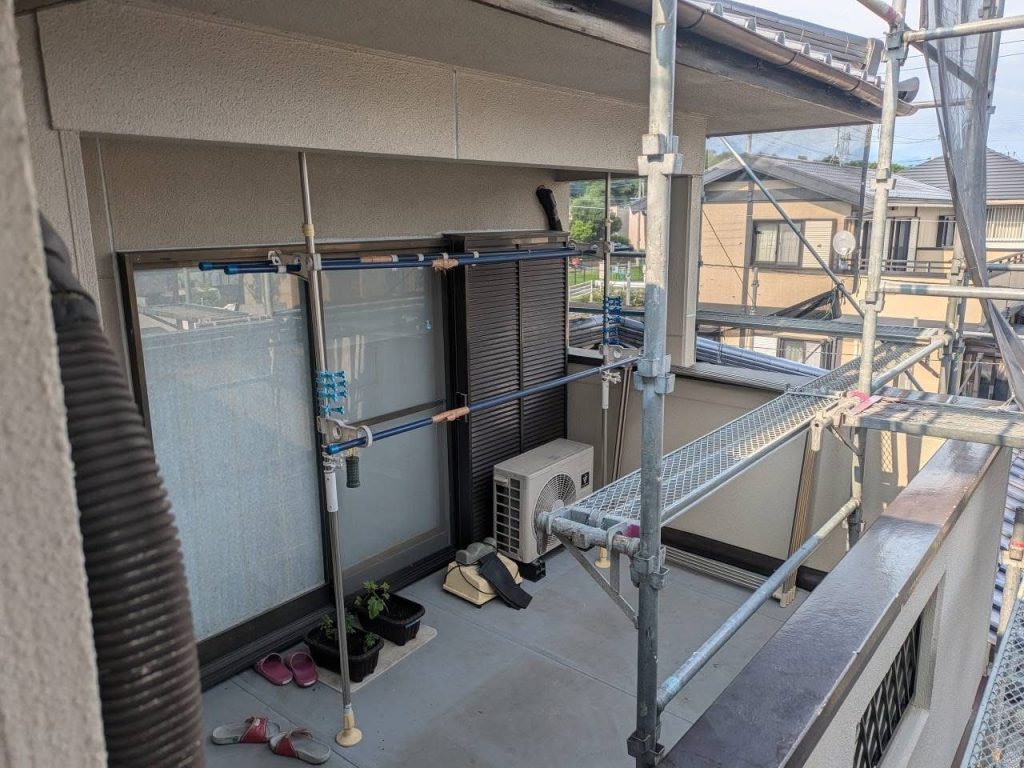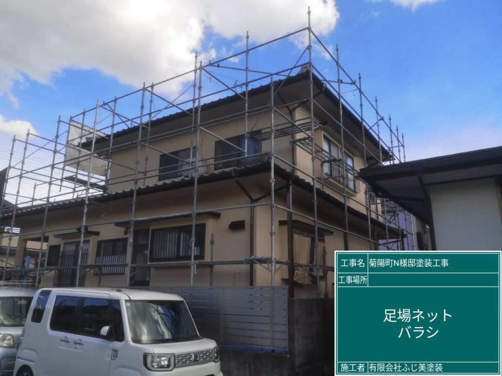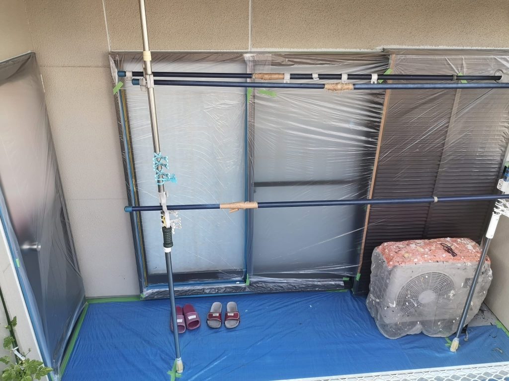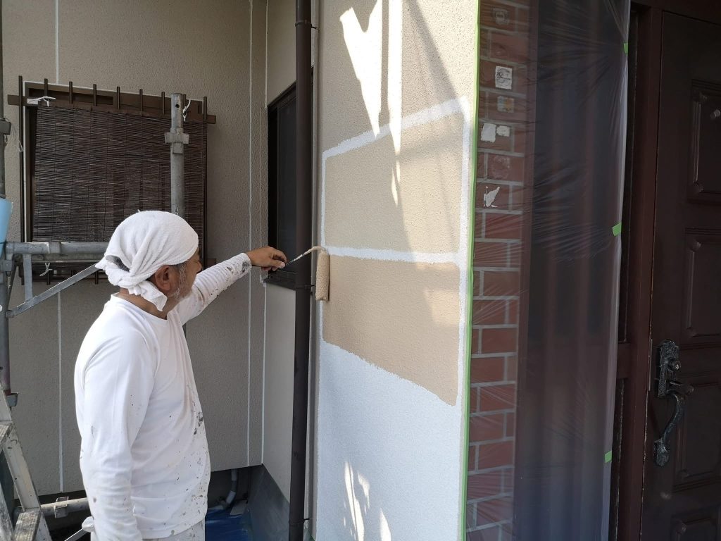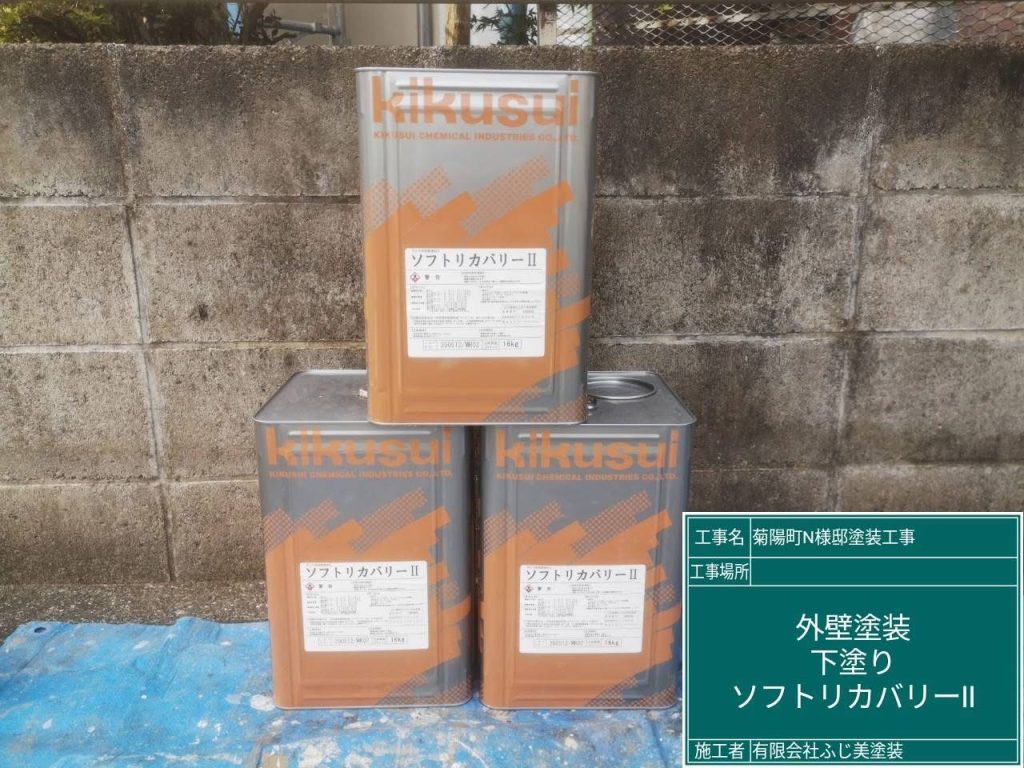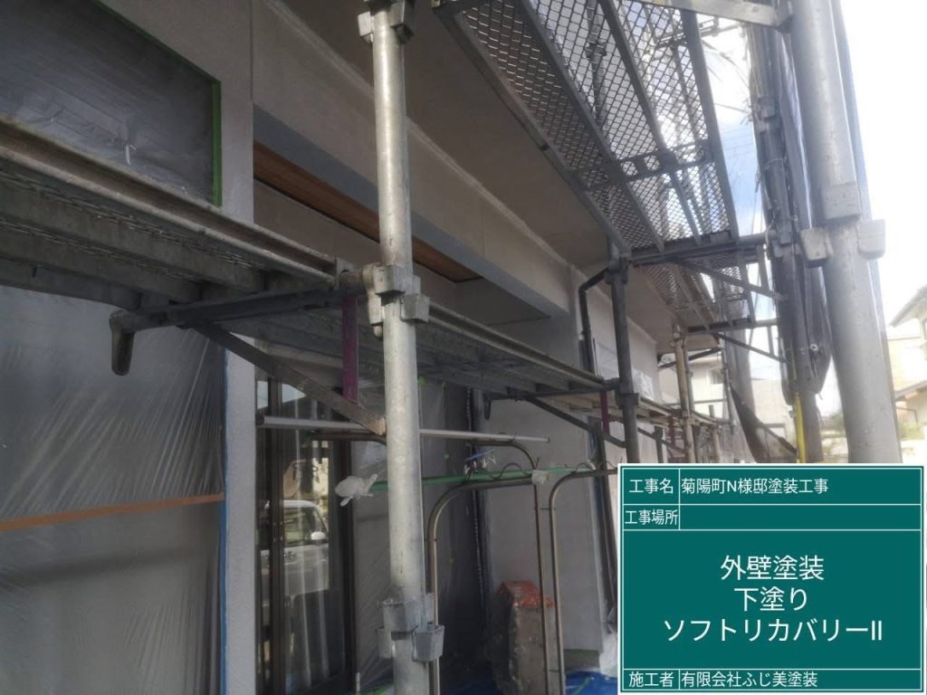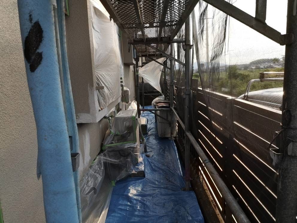 合志市 N様邸 下地処理、サンプル塗料塗布、マスキングスタート