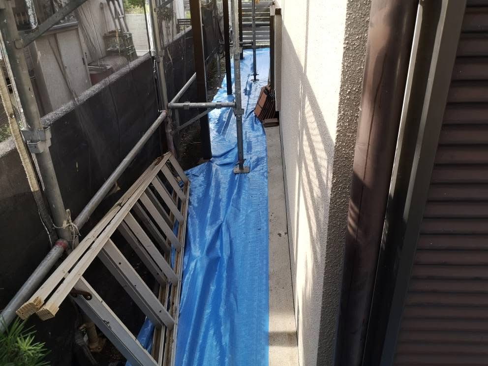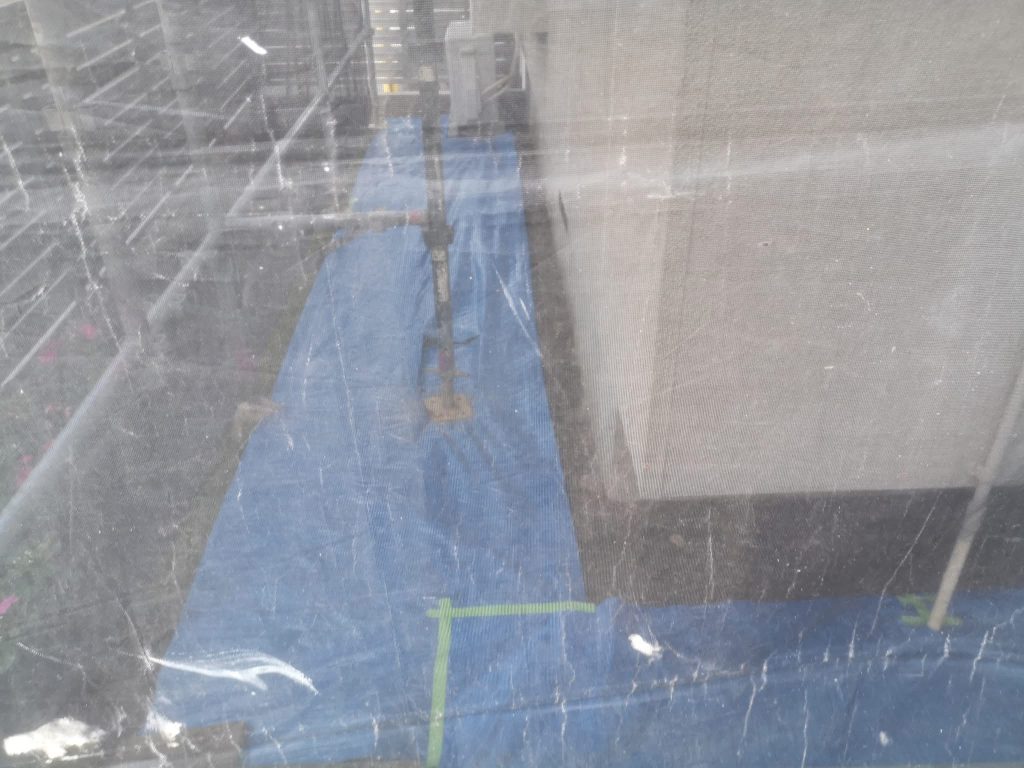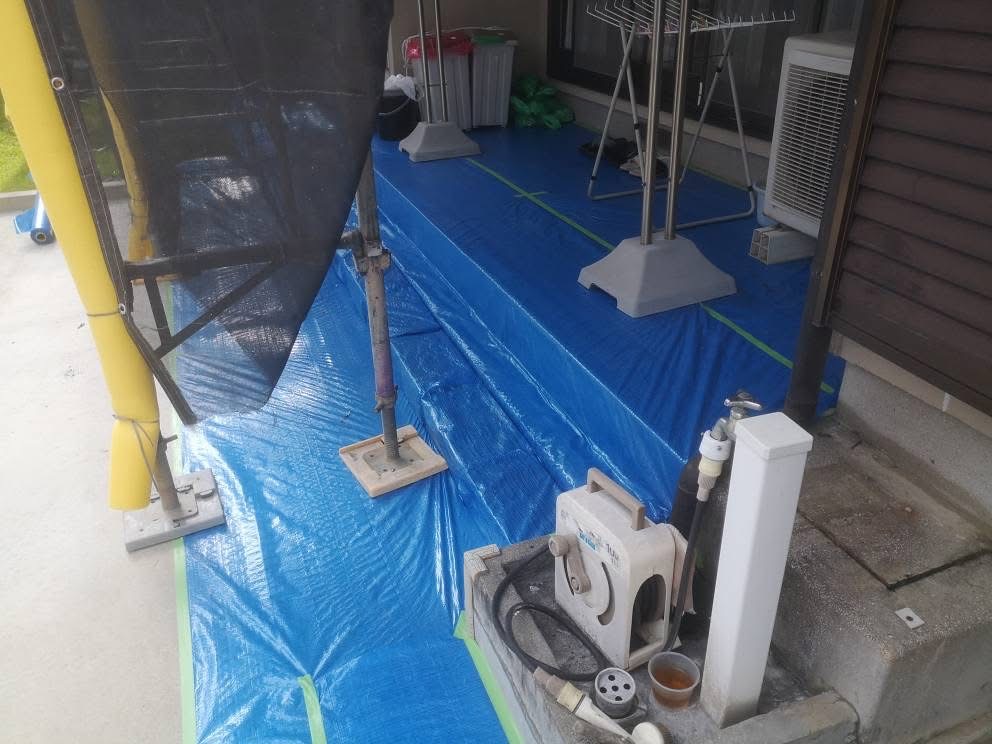 本日は午後より乗り込ませて頂き下部ブルーシート張りを行なっております。