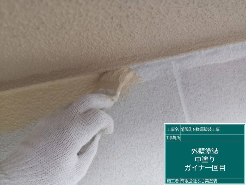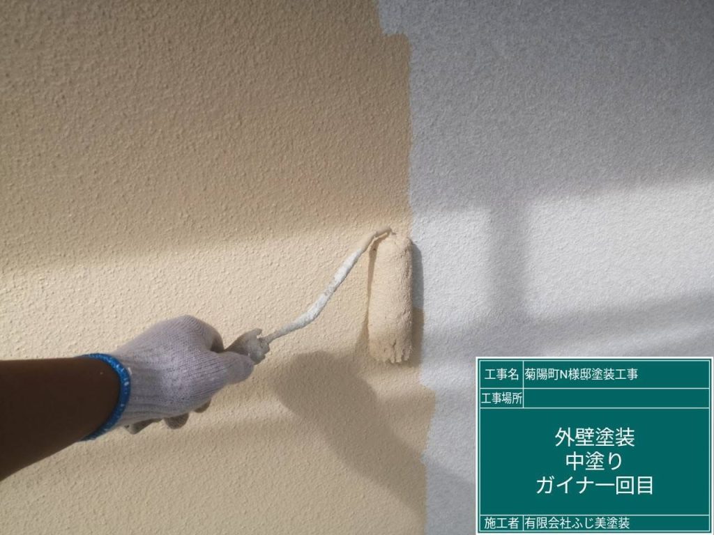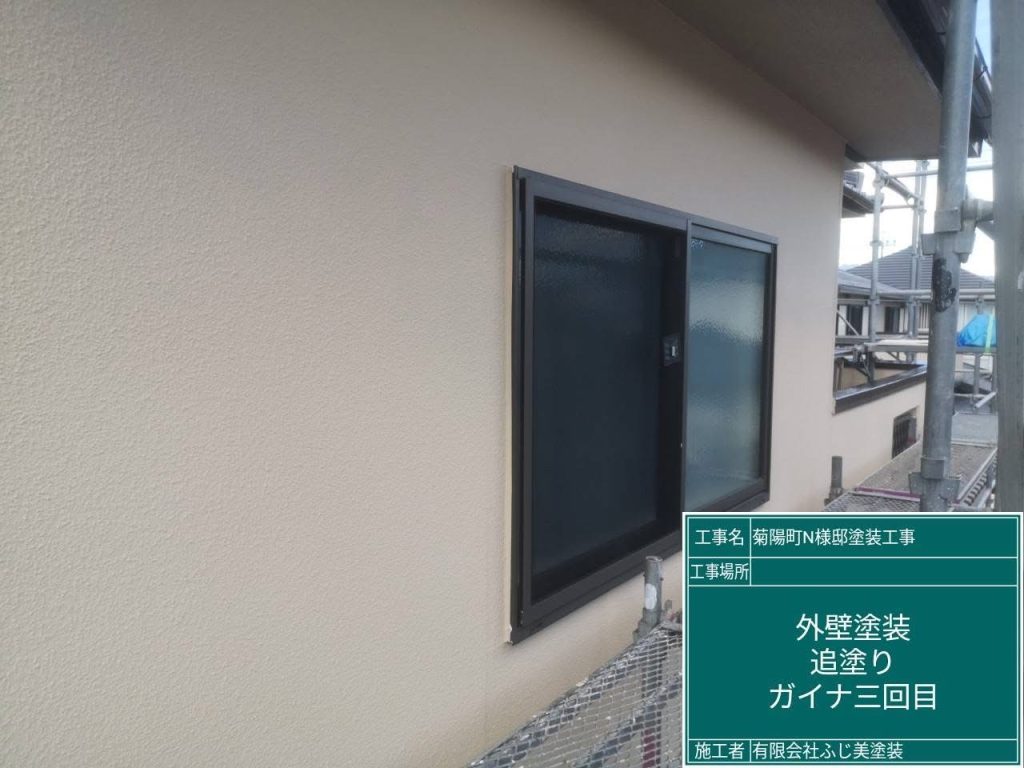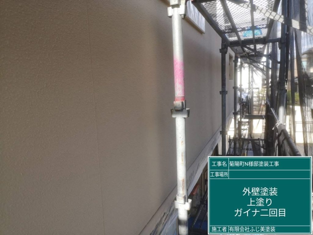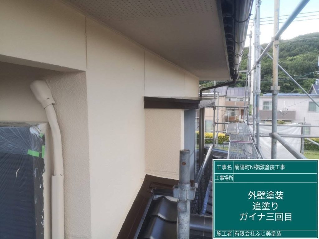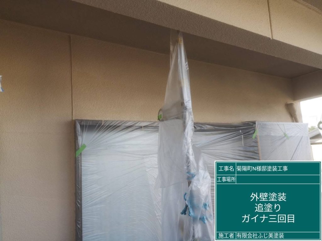本日は朝より乗り込ませて頂きガイナ塗布1回目からスタートしております。午後よりガイナ塗布2回目を行い、3回目塗布を2階ベランダ内、