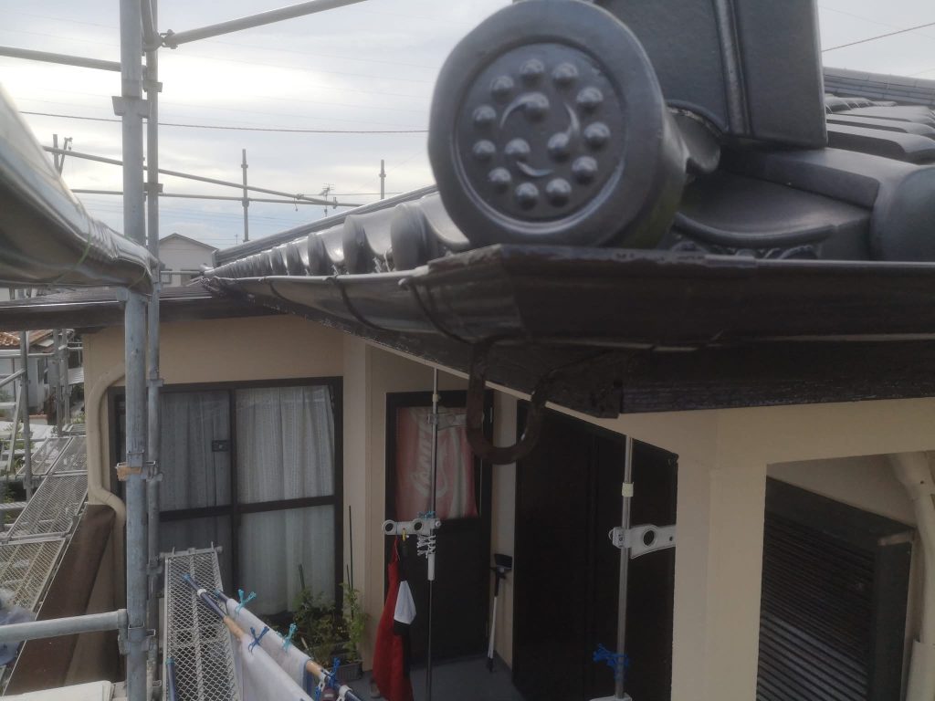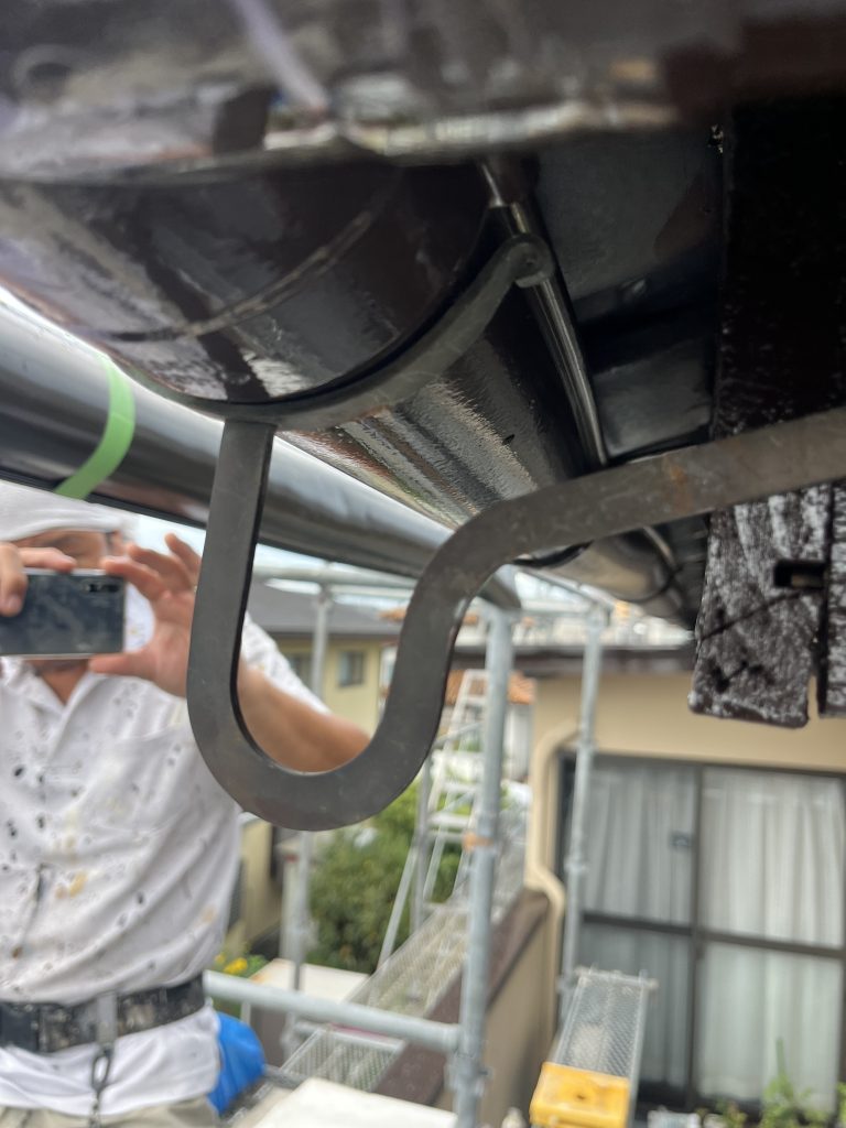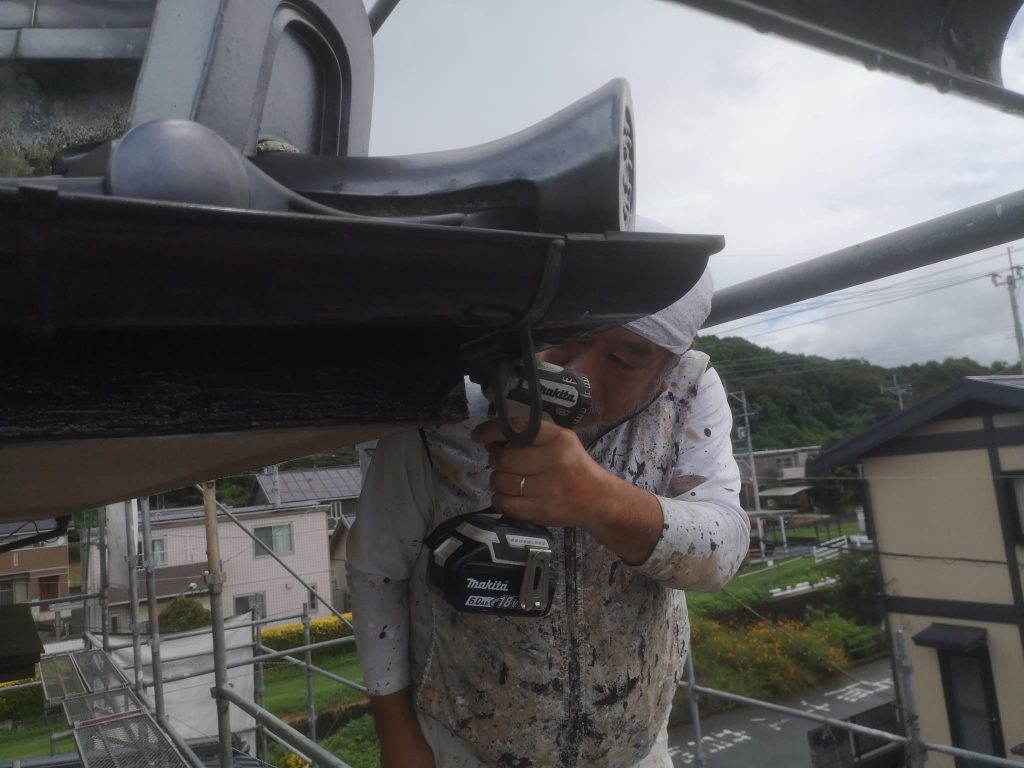 先日よりお話をお聞き致しました二階部東面樋部を部材を付けて上げております。
