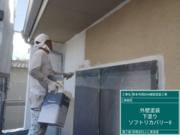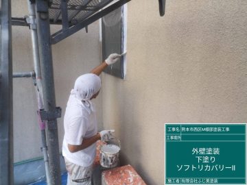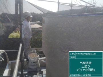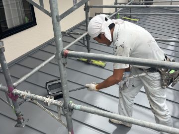 ガルバリウム鋼板の屋根とスタッコ調の外壁に断熱ガイナを塗装致します。