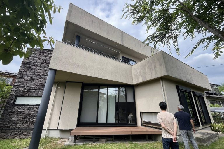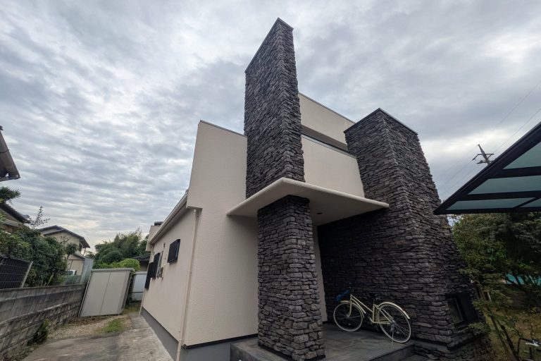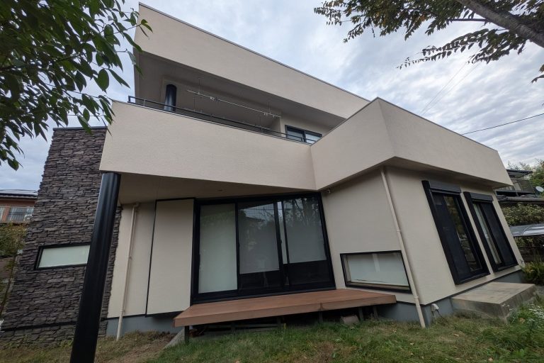 北面の外壁には汚れを防ぎ苔の発生を抑制するためにナノヴェールを塗装しています。