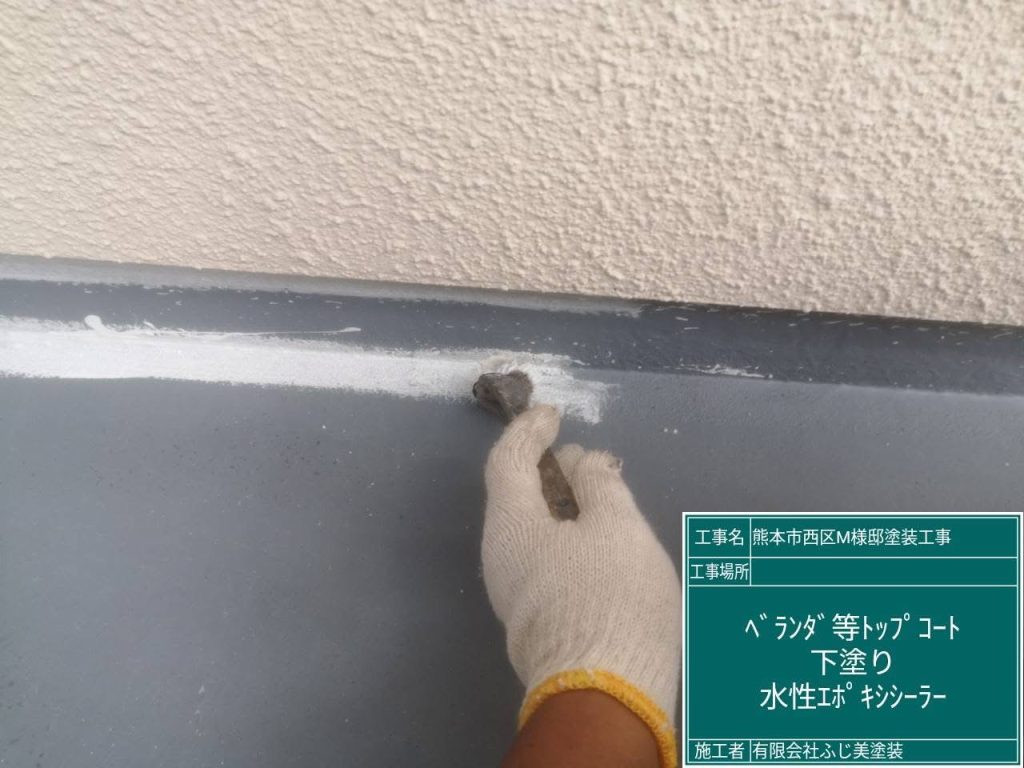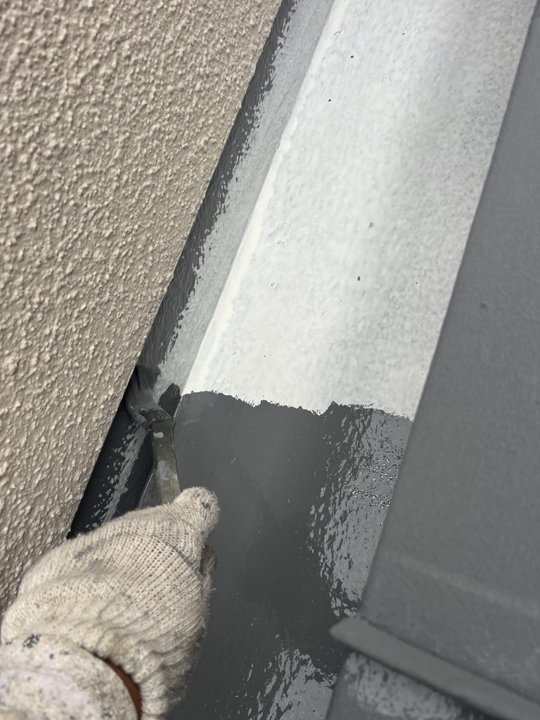 マスキングを行い、プライマーを塗布致します。乾燥後シーリングを充填しております。