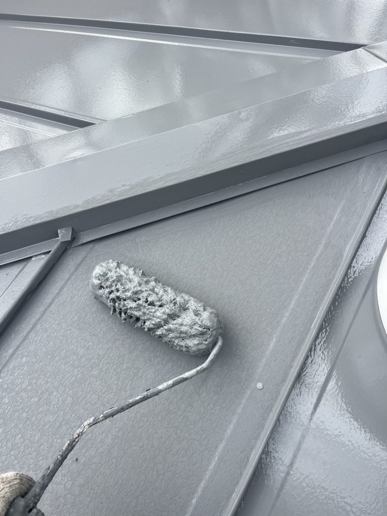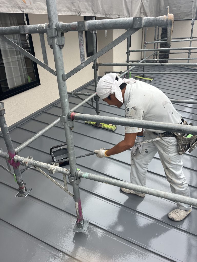 大変お世話になります。本日は屋根トタン、ガイナ3回目塗布からスタートしております。