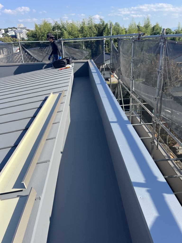 その他北面下屋フッ素上塗、東南面排水溝フッ素中、上塗を行い、足場が掛かる箇所をガイナ塗布2回塗布しております。