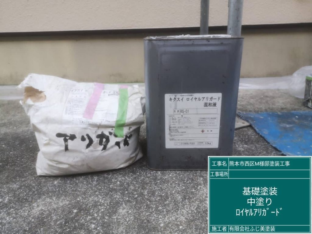 大変お世話になります。本日は朝より乗り込ませて頂き基礎部アリガード上塗からスタートしております。
