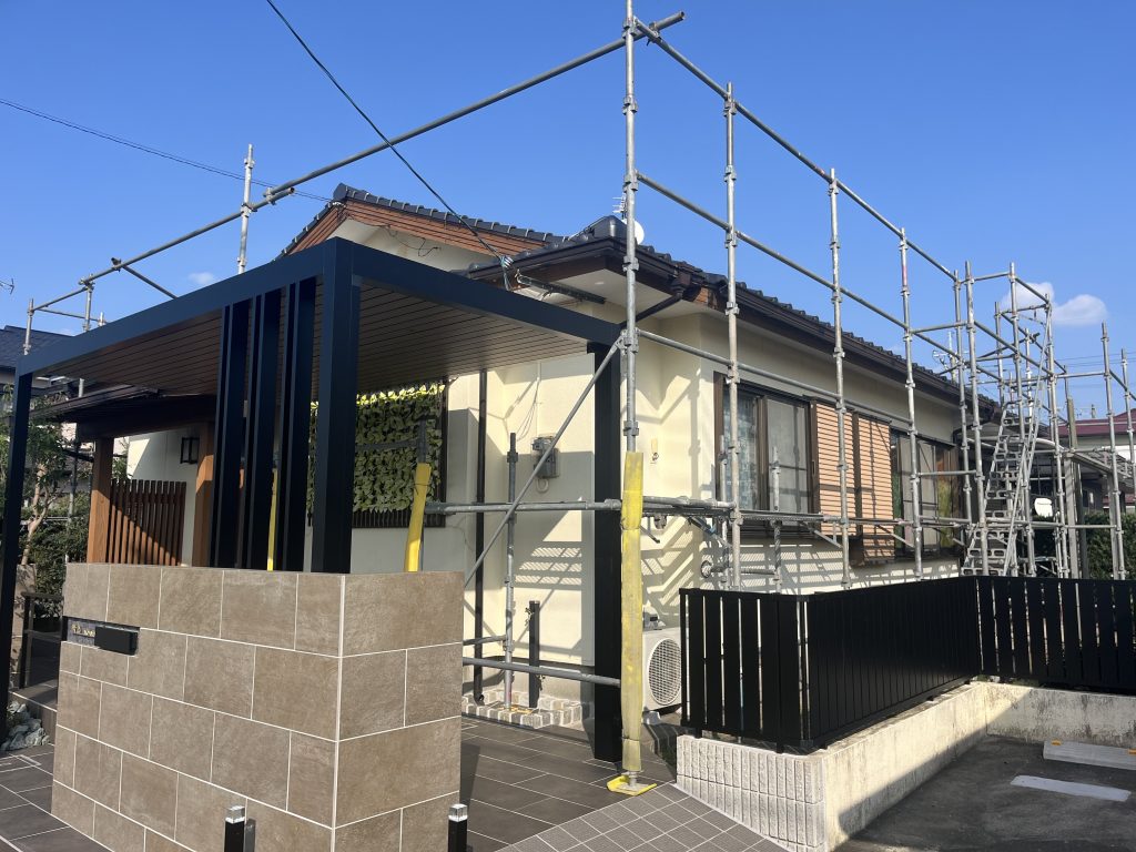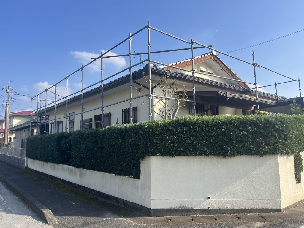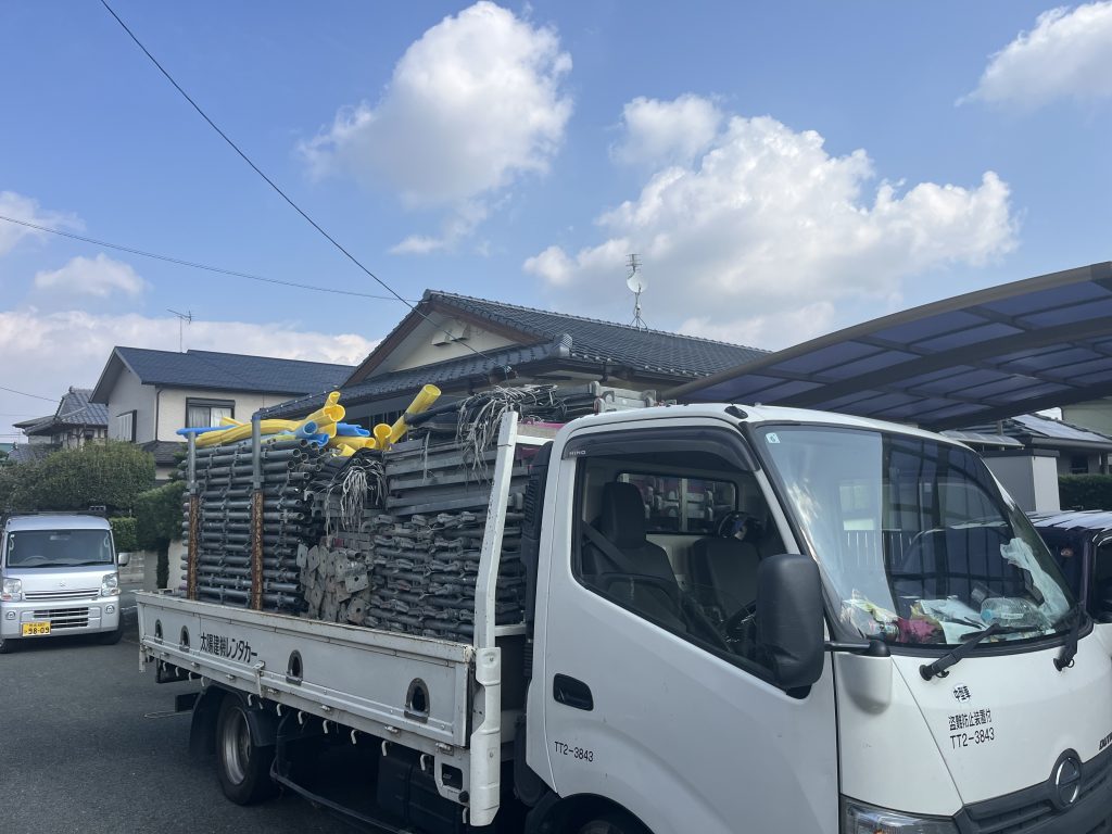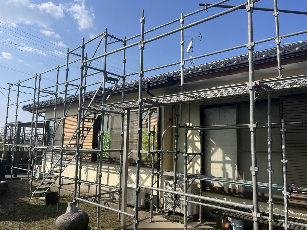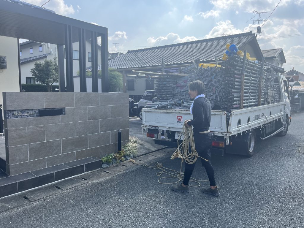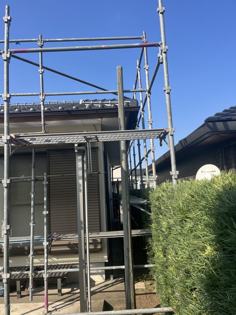 大変お世話になります。本日は朝より乗り込ませて頂き足場組立作業を行なっております。