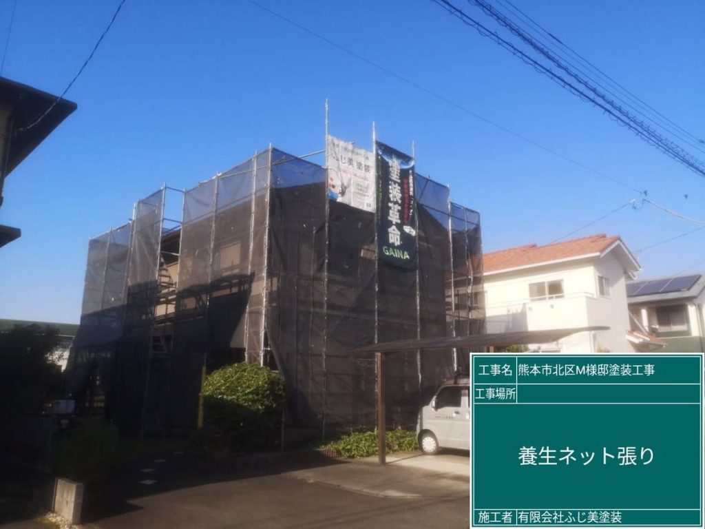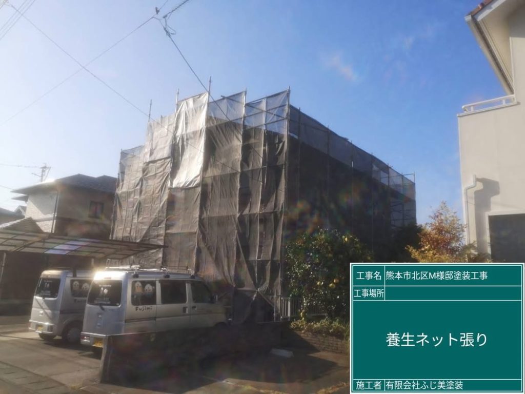 熊本市北区 M様邸 飛散防止ネット張り 2025.11.14 カテゴリー: 熊本市北区 M様邸 飛散防止ネット張り 大変お世話になります。本日は朝より乗り込ませて頂き飛散防止ネットを張らせて頂きました。