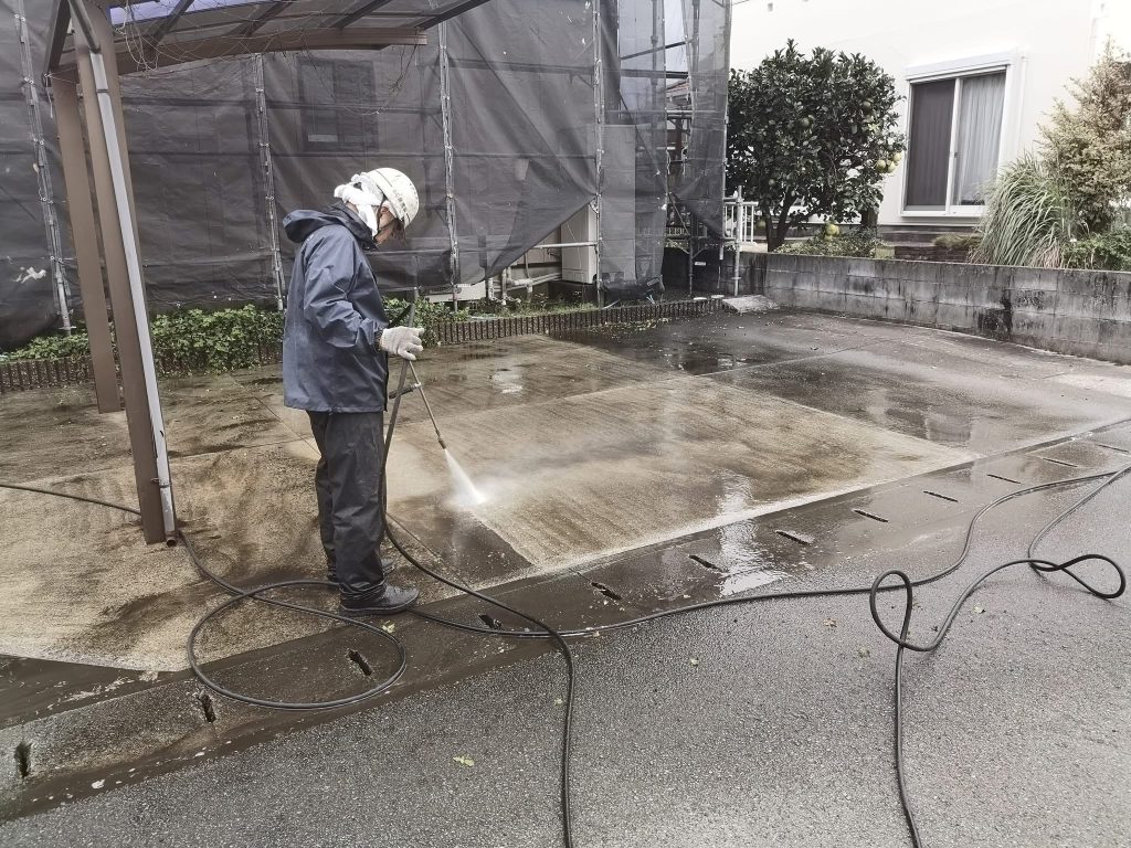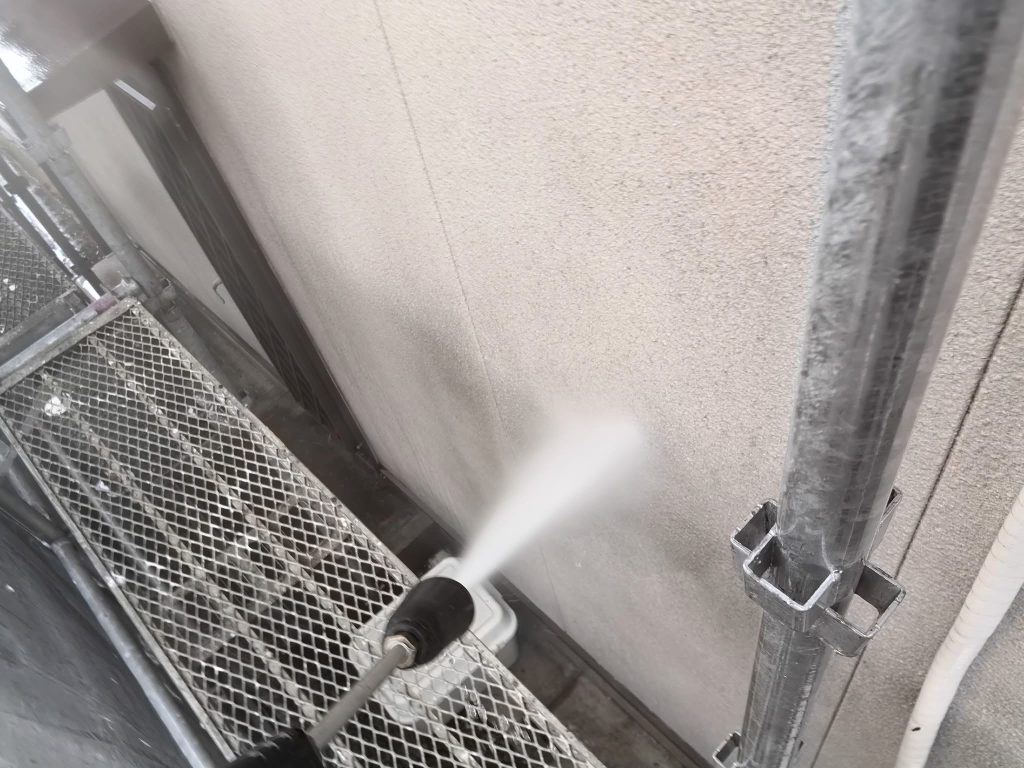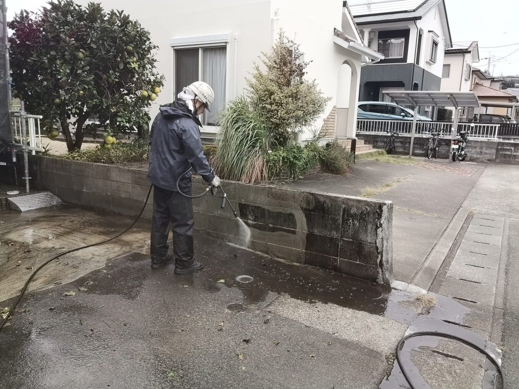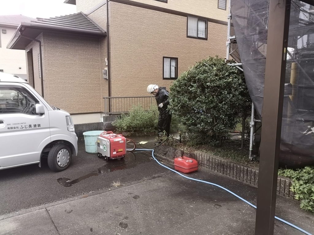 大変お世話になります。本日は朝より乗り込ませて頂き高圧洗浄をさせて頂いております。