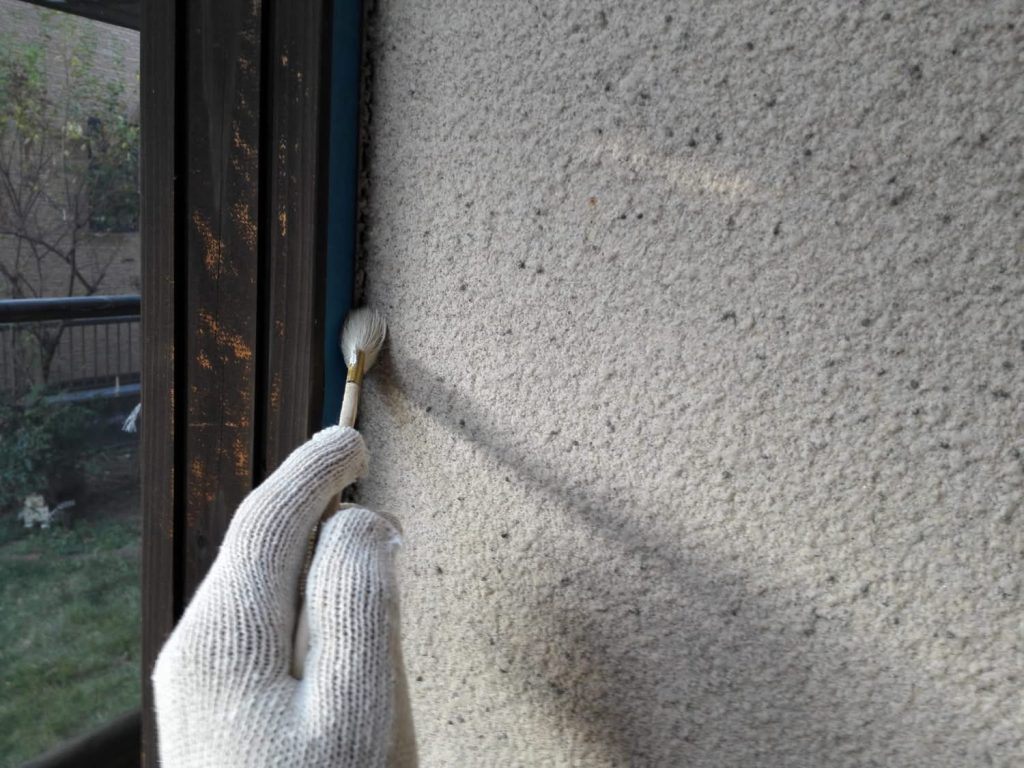 大変お世話になります。本日は朝より乗り込ませて頂きシーリングプライマー塗布からスタートしております。