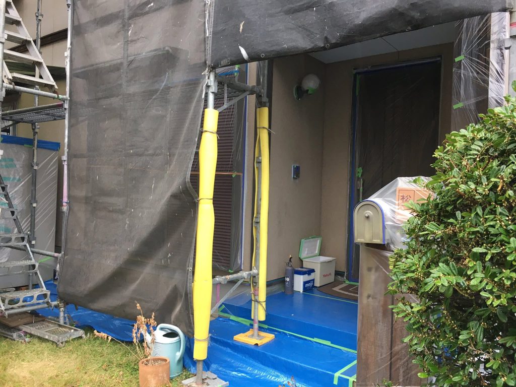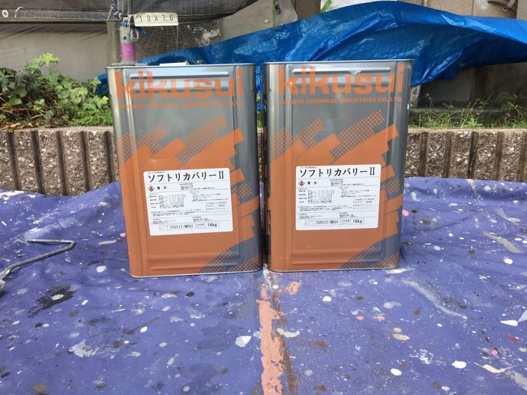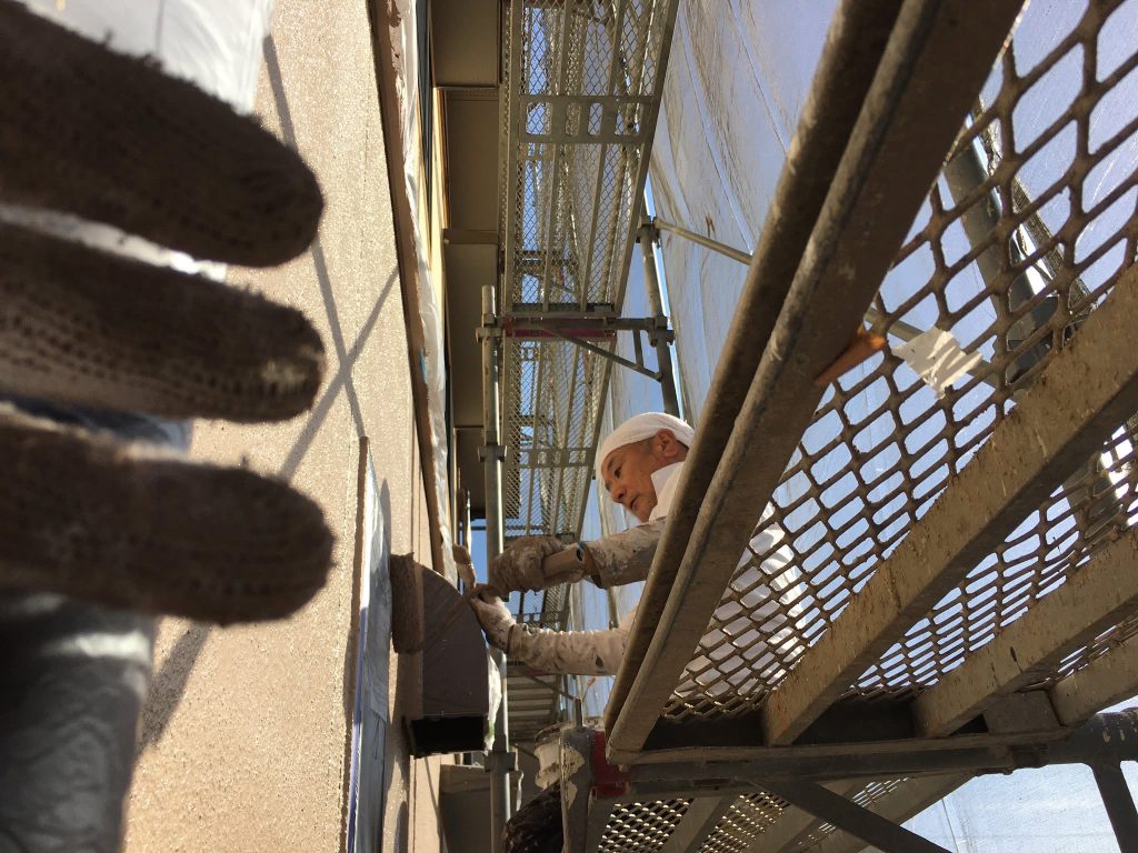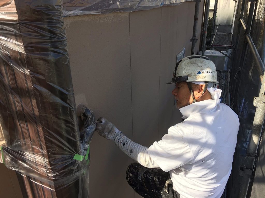 大変お世話になります。本日は朝より乗り込ませて頂き柱塗布を行なっております。