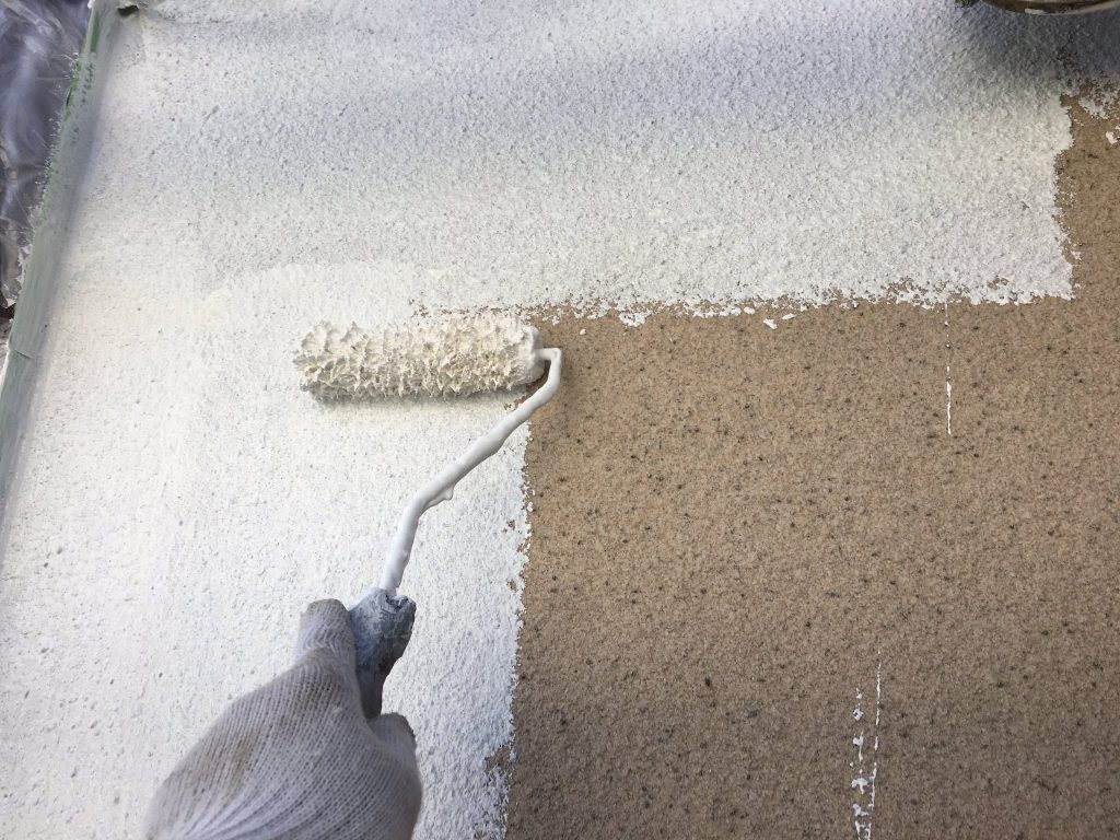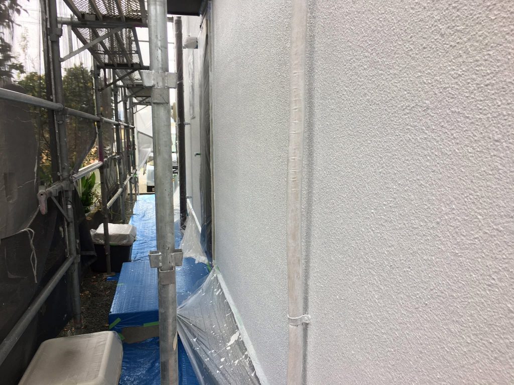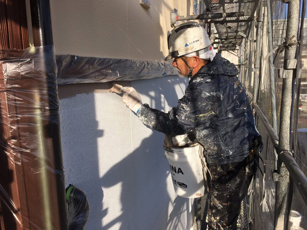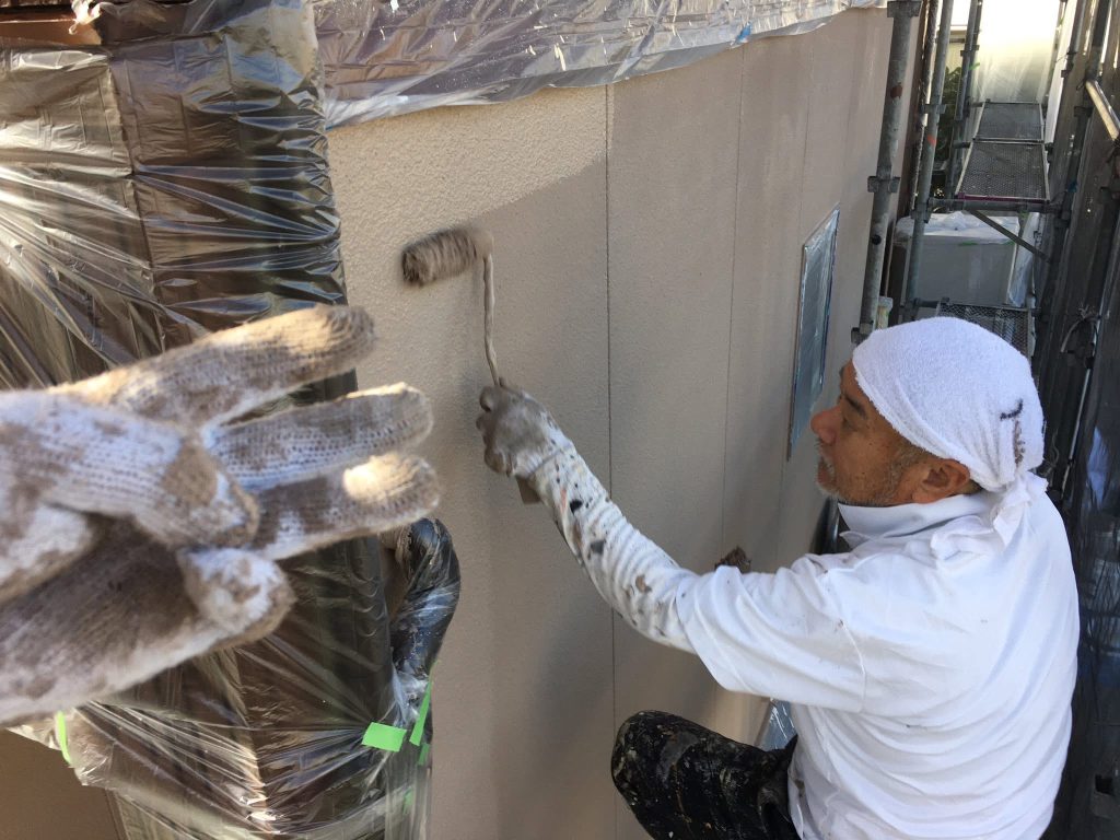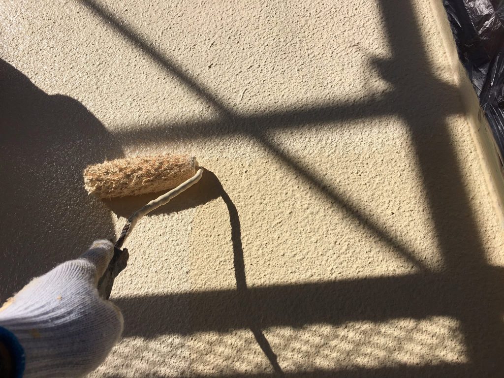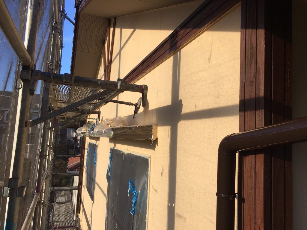 大変お世話になります。本日は朝より乗り込ませて頂き壁下塗フィラーを塗布、完了しております。