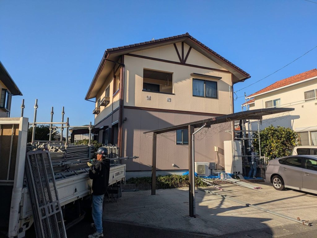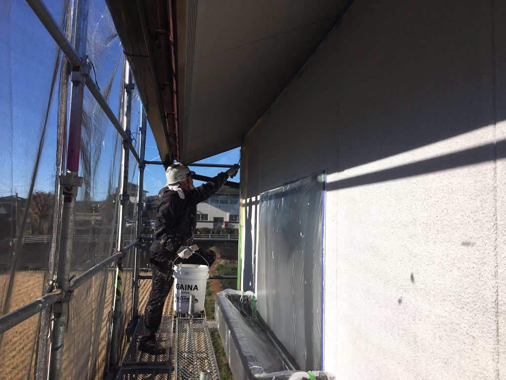 大変お世話になります。本日は朝より乗り込ませて頂き2階部ガイナ塗布開始しております。