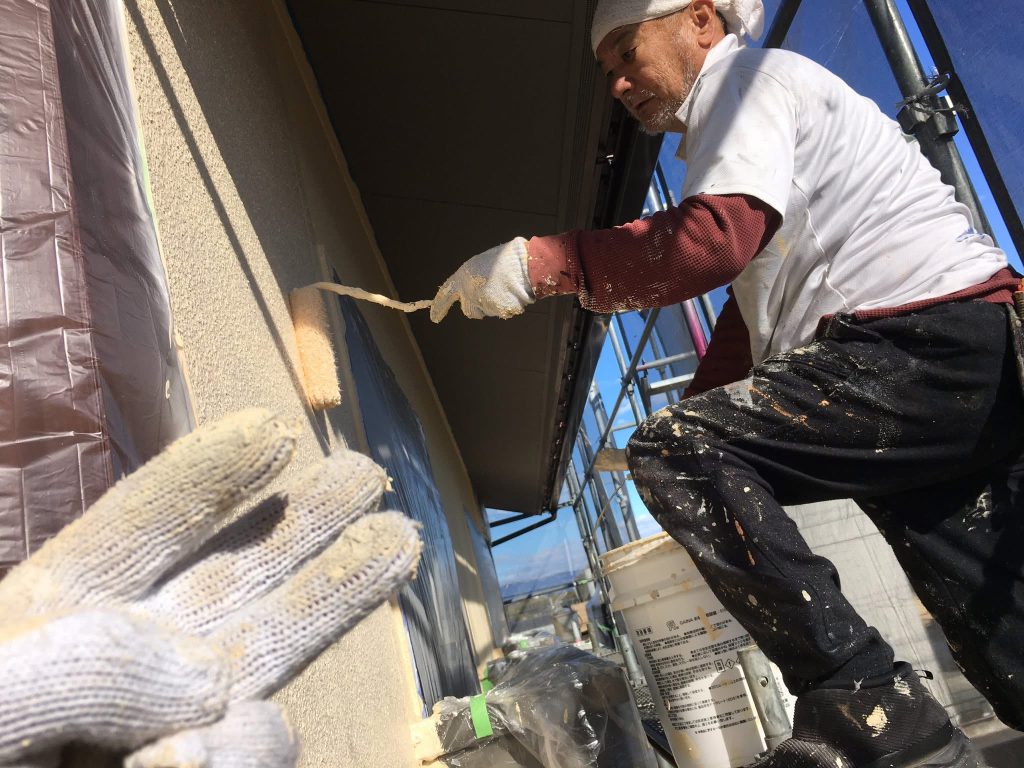 熊本市北区 M様邸 壁下塗フィラー塗布スタート