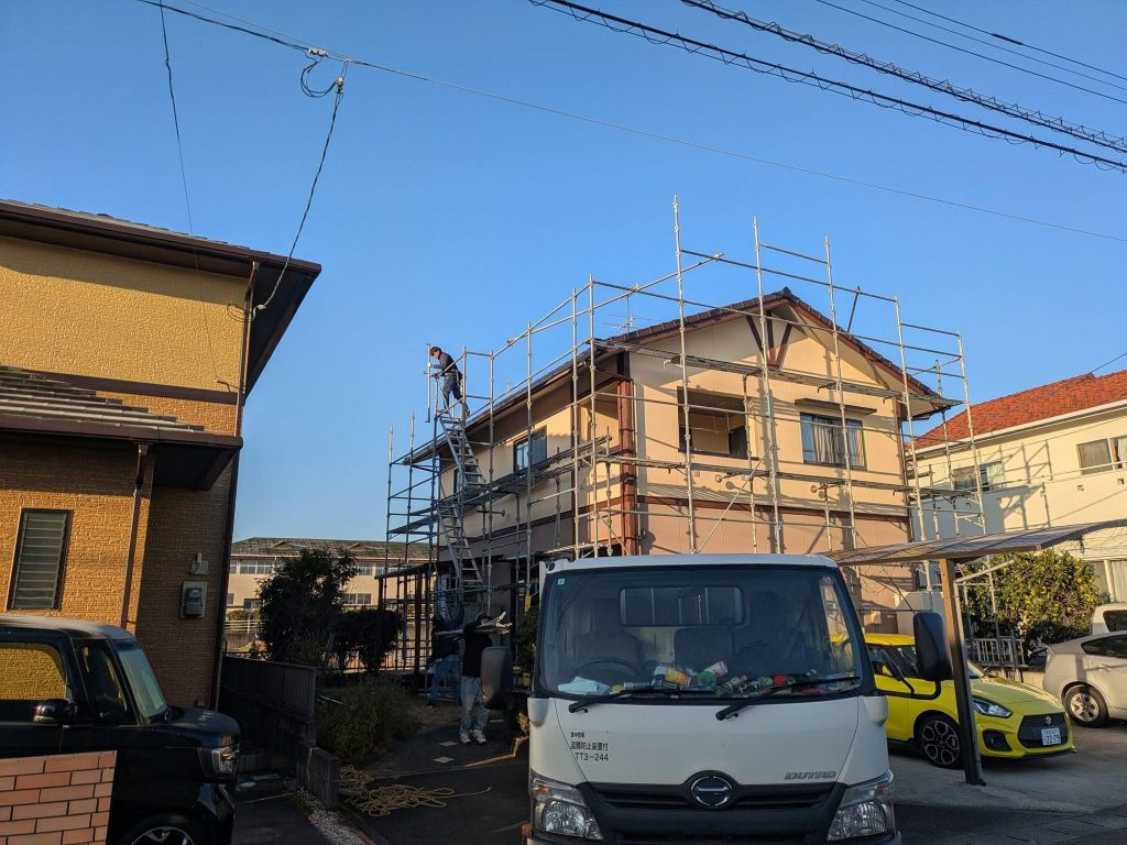 大変お世話になります。本日は朝より乗り込ませて頂きマスキングスタートさせて頂いております。