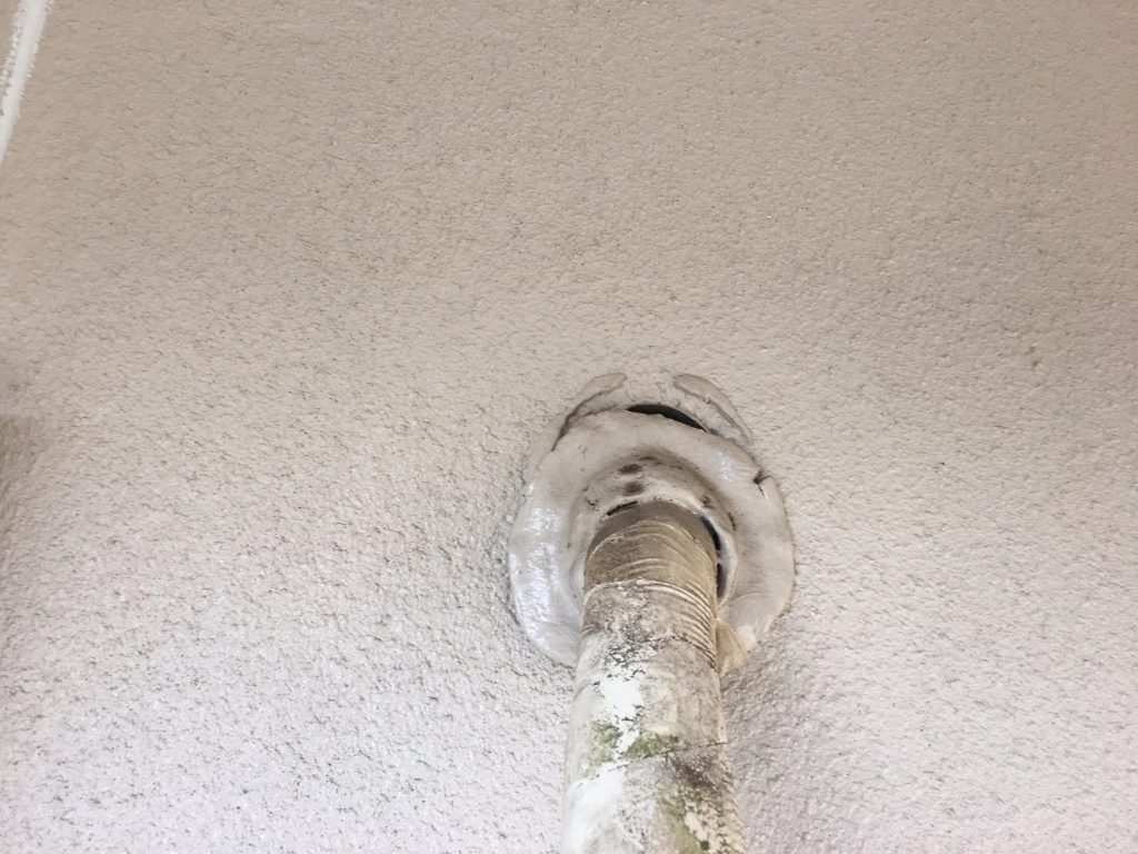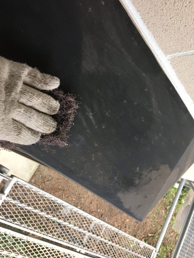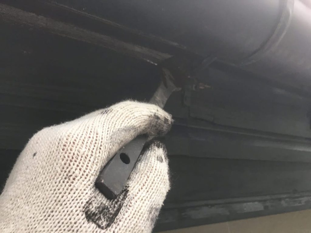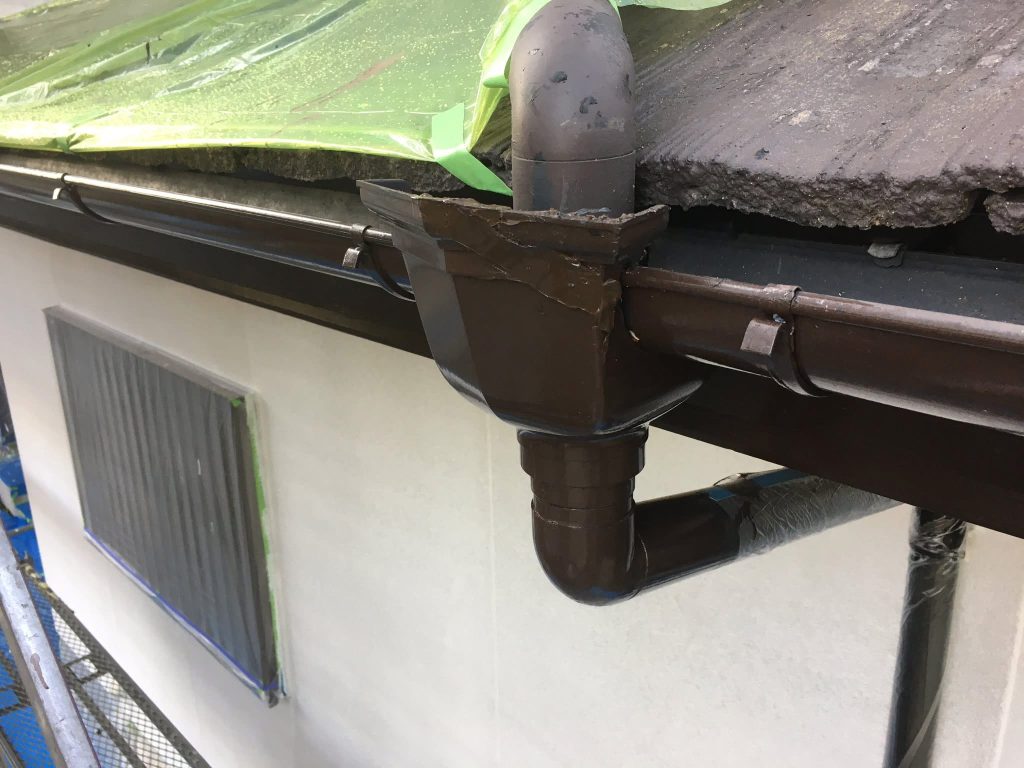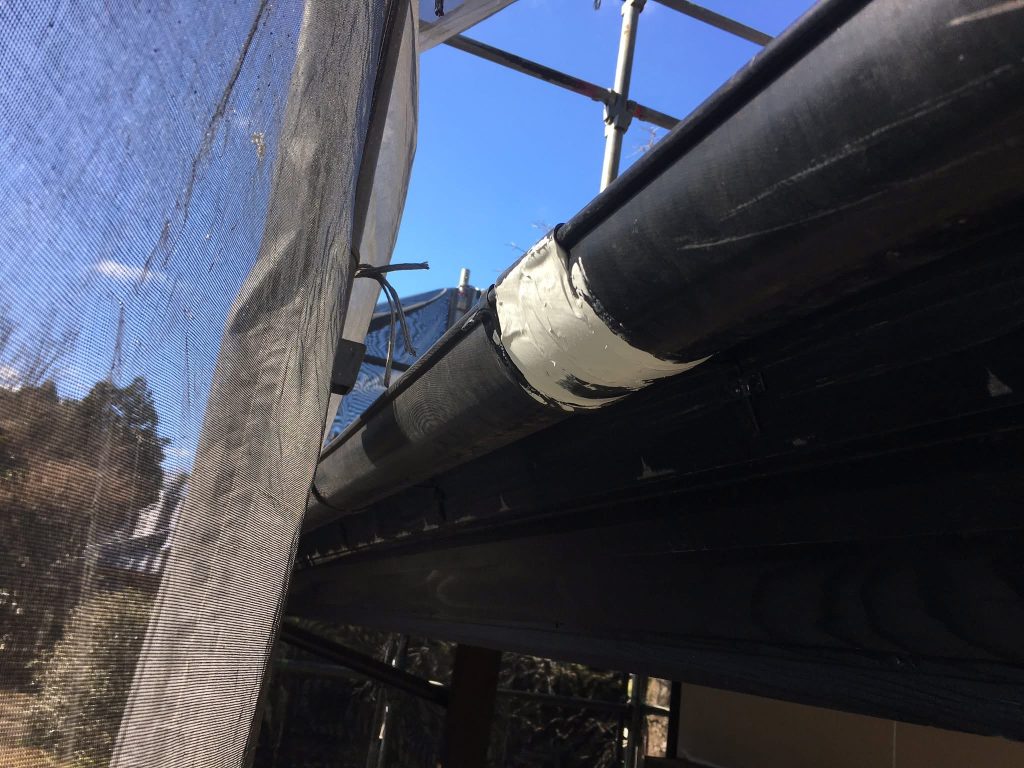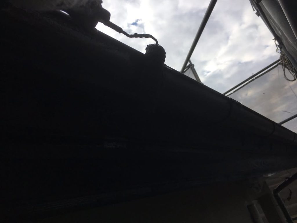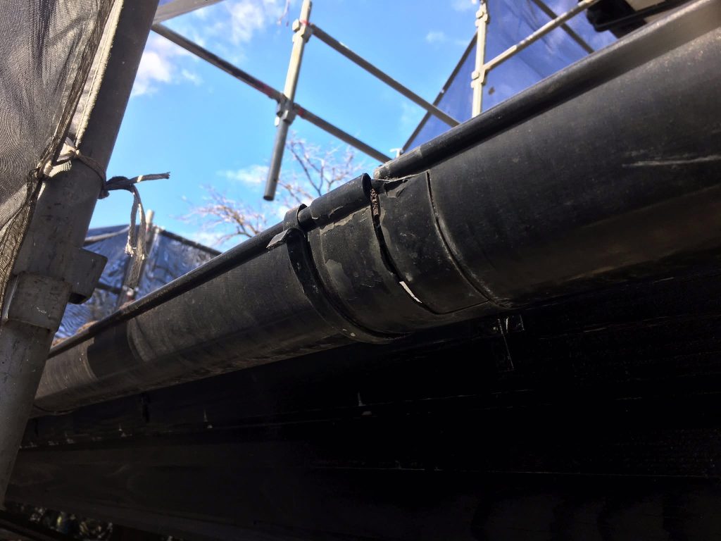 大変お世話になります。本日は朝より乗り込ませて頂き、樋部の補修からスタートしております。
