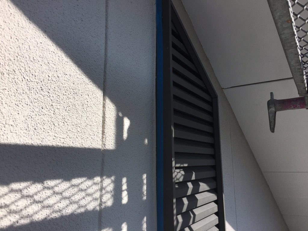 大変お世話になります。本日は朝より乗り込ませて頂き破風、横樋の上塗り作業からスタートしております。