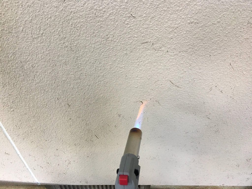 その後北面壁の蔦の足をバーナーにて焼いて下地調整を行なっております。