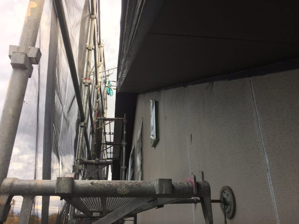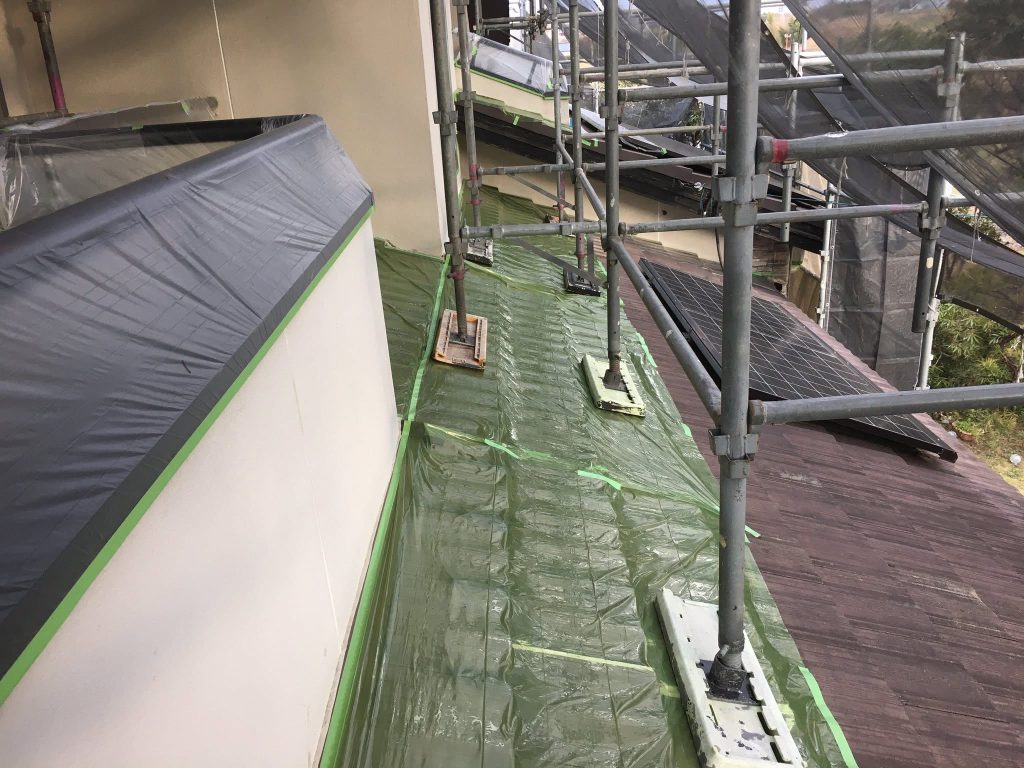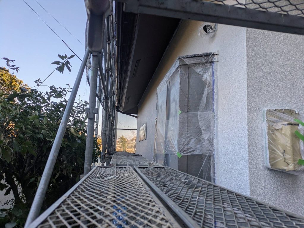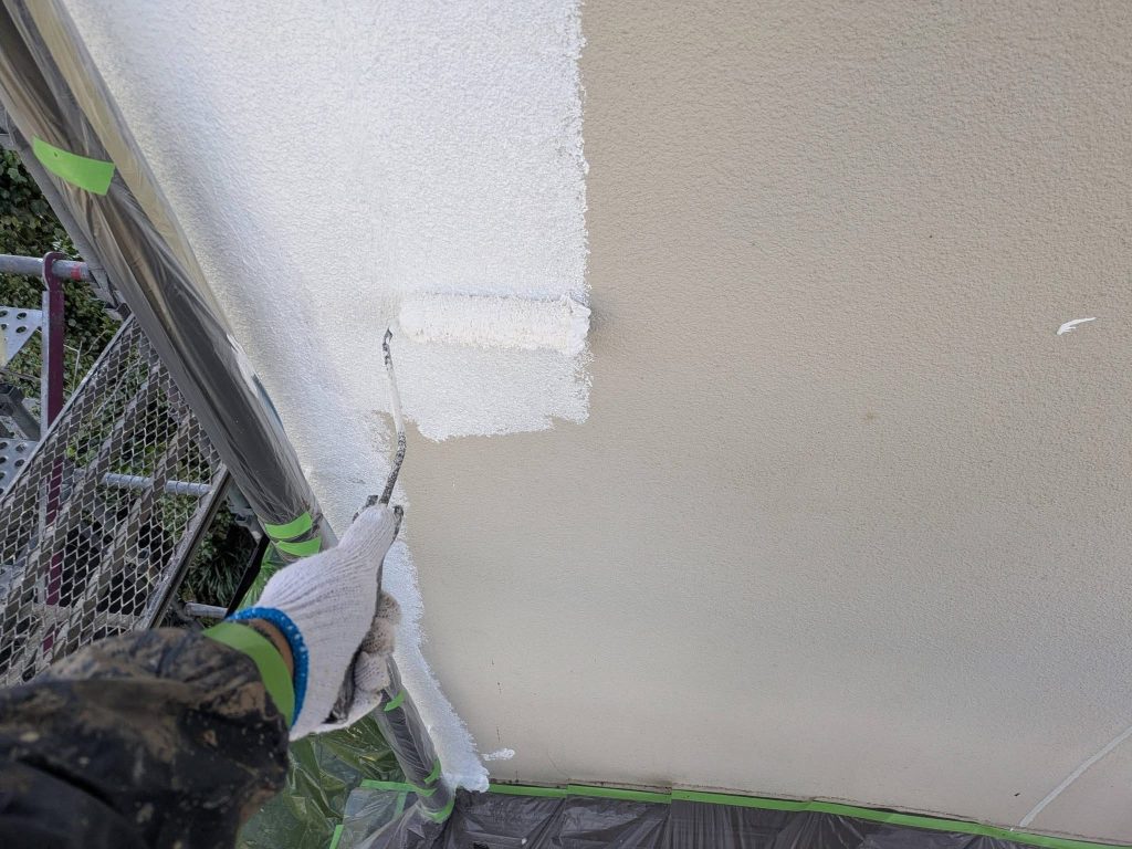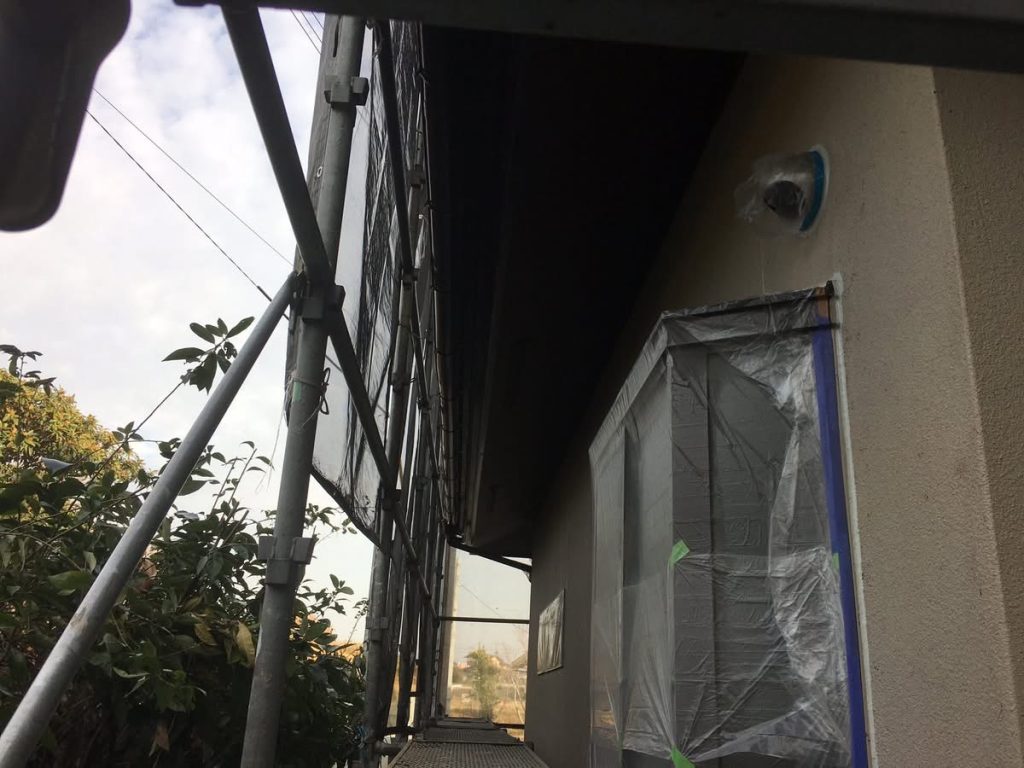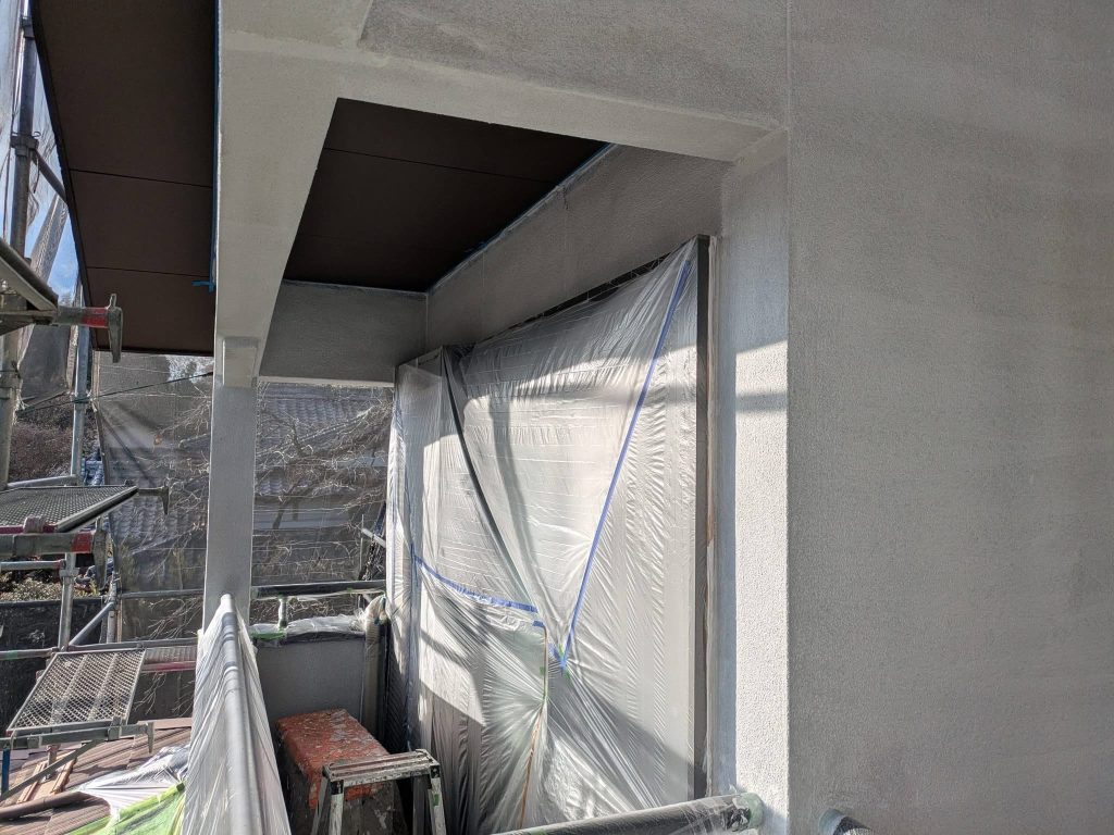 合志市 O様邸 マスキング完了、軒天井塗布スタート
