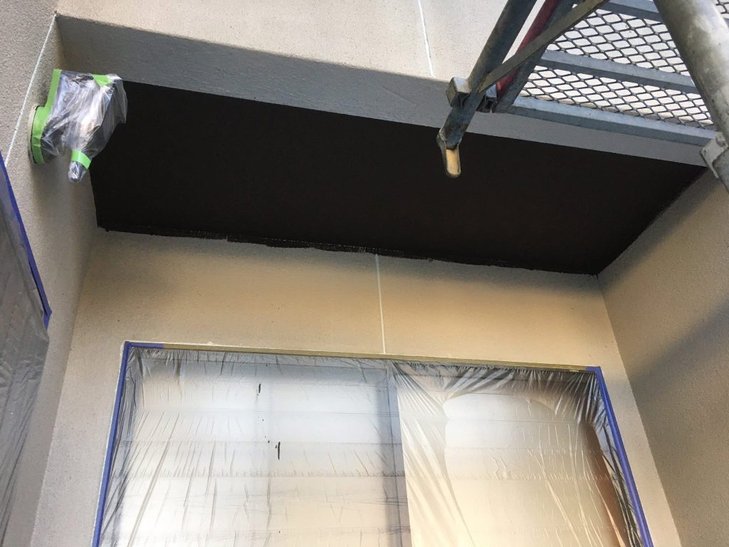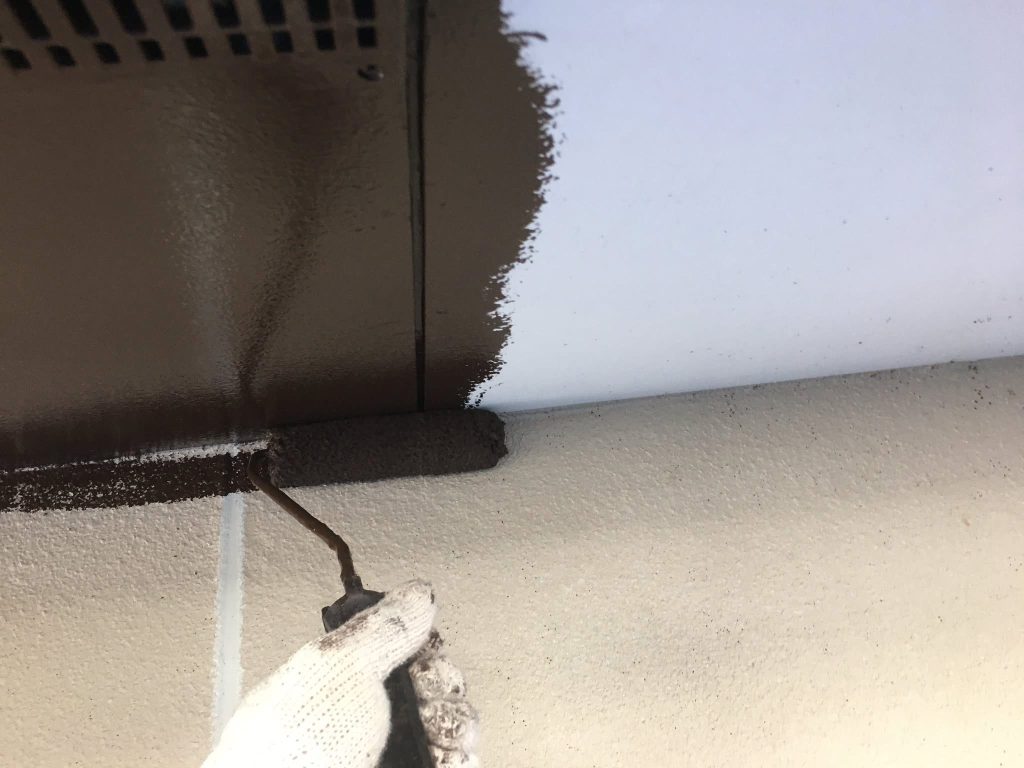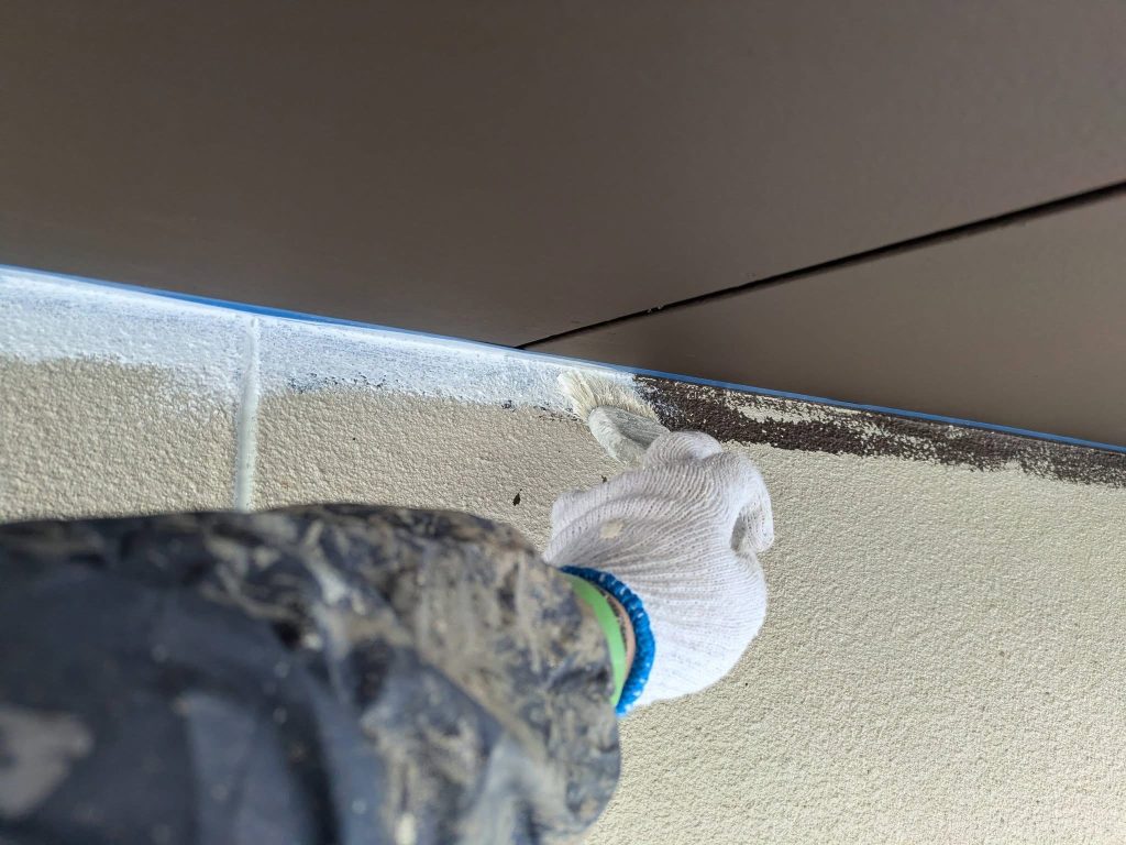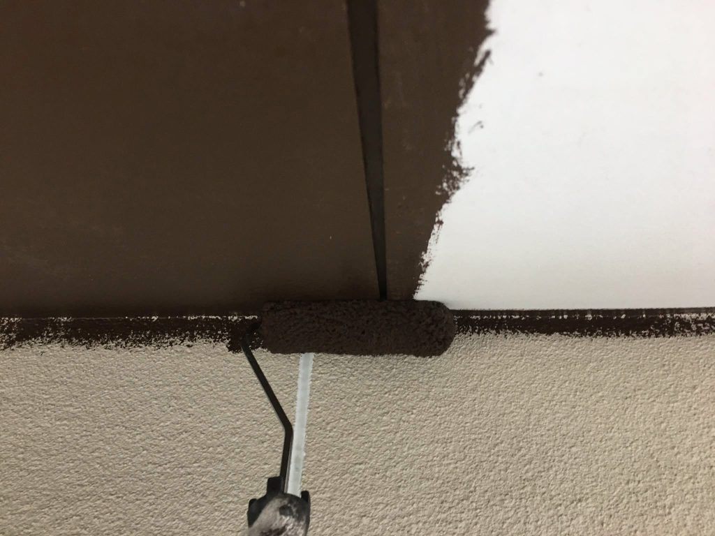 マスキング完了後、軒天井塗布をスタートしております。