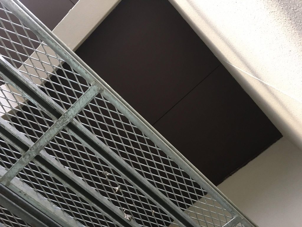 大変お世話になります。本日は朝より乗り込ませて頂き北面フッ素1回目塗布を行なっております。1回目塗布を完全乾燥させて参ります。