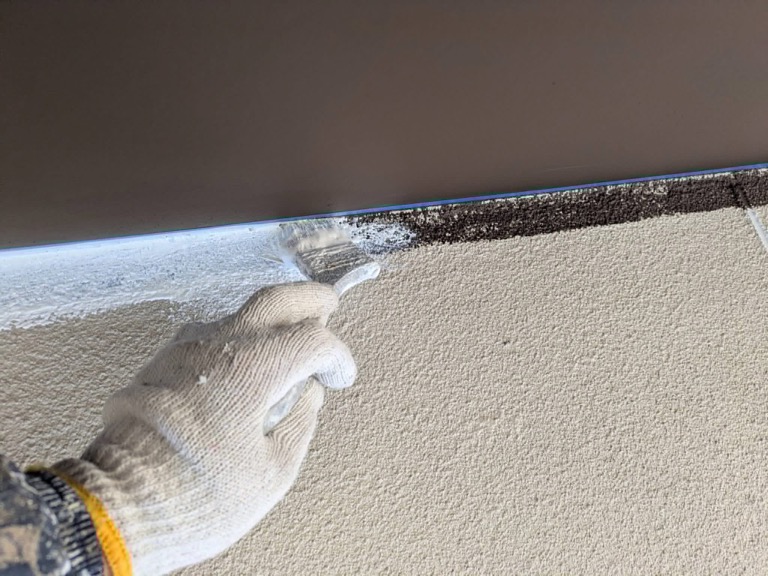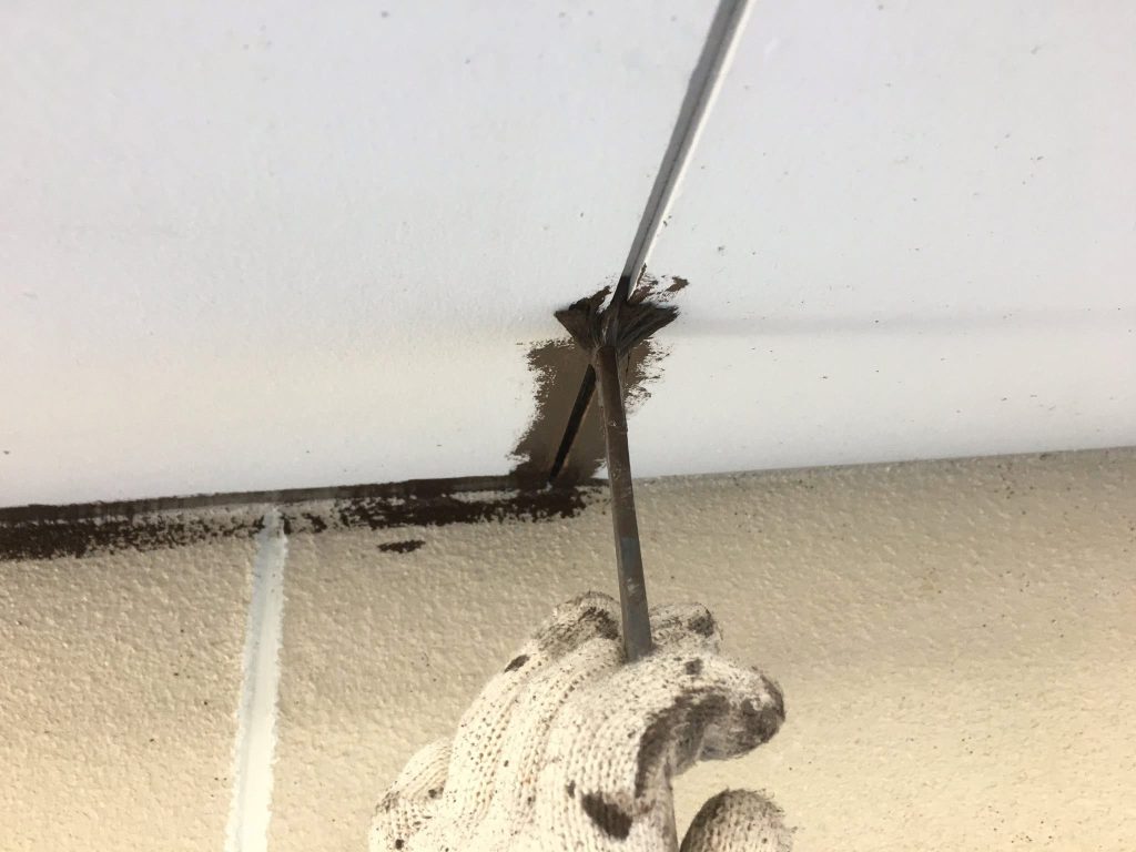 大変お世話になります。本日は昨日に引き続きシーリング充填作業からスタートしております。