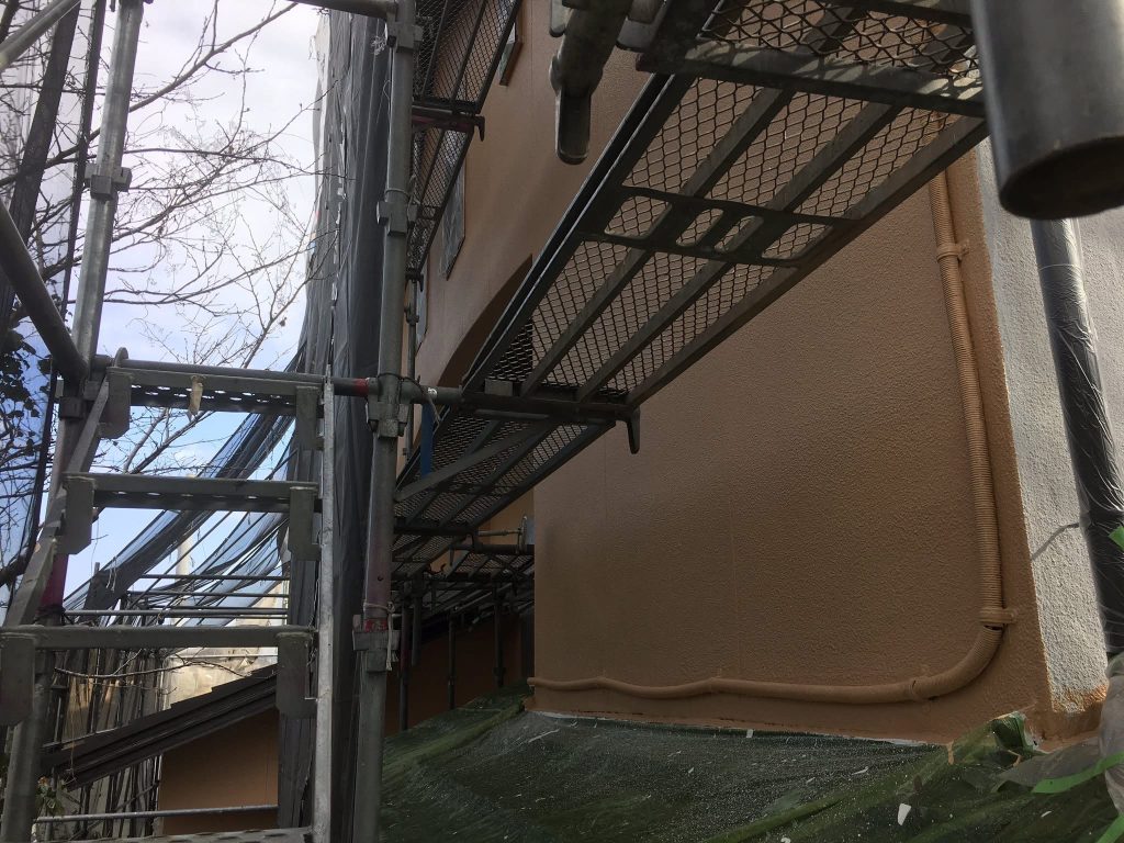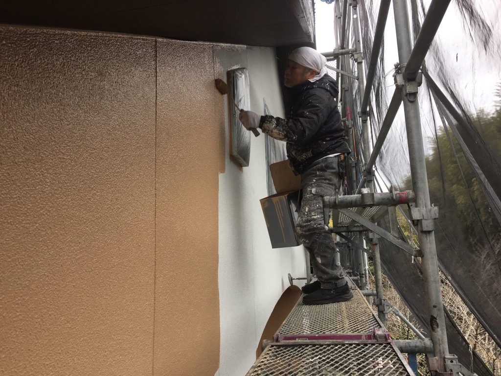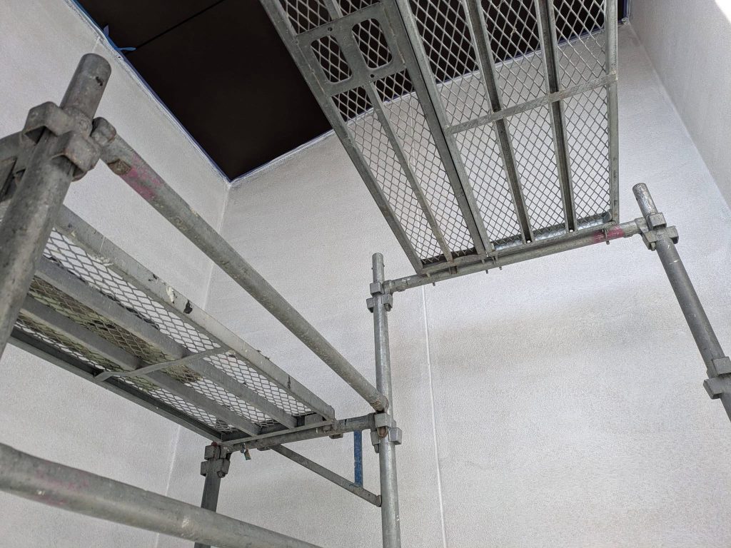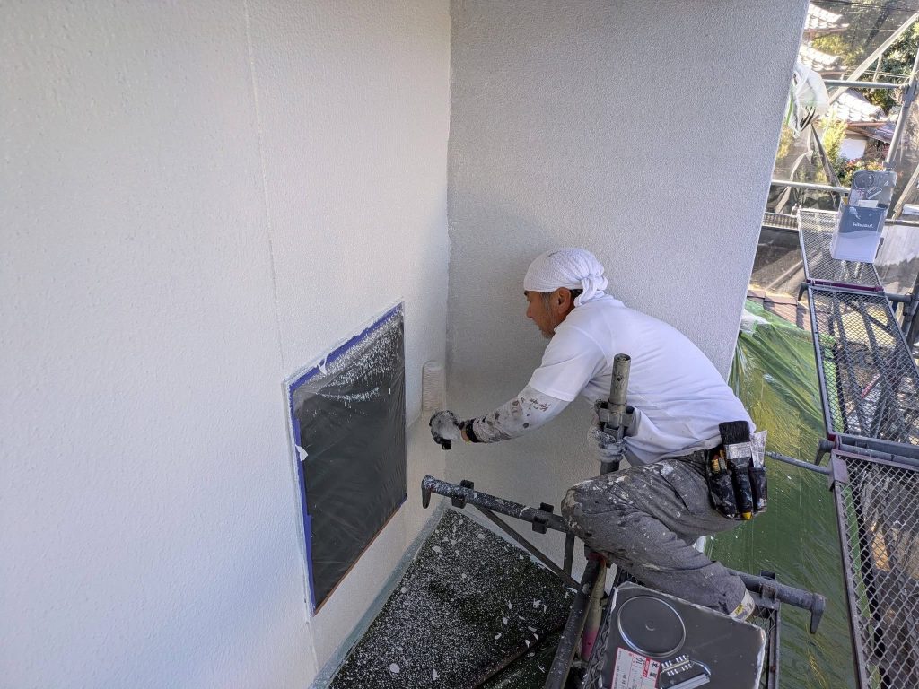 大変お世話になります。本日は午後より乗り込ませて頂き北面壁の下塗2回目塗布を行なっております。