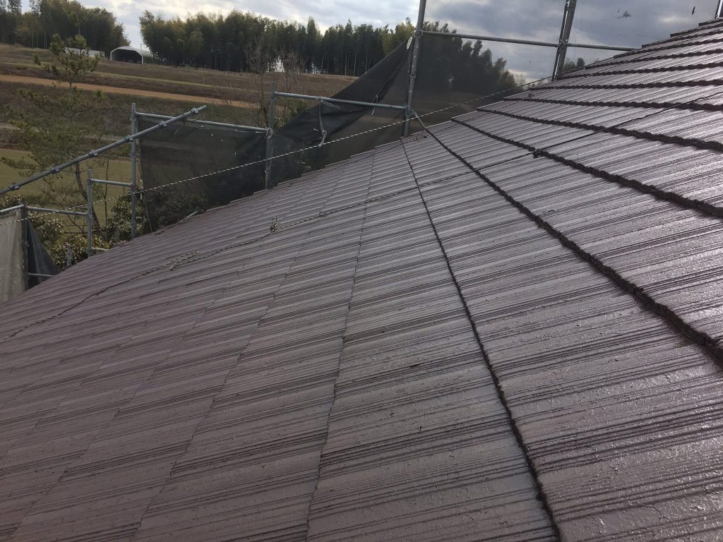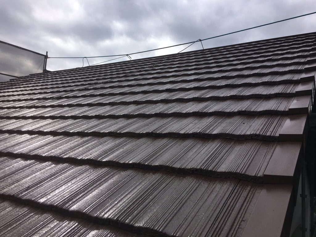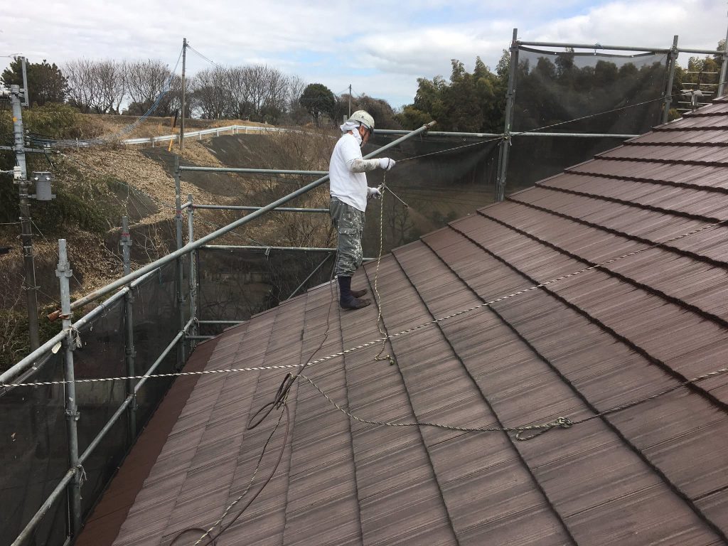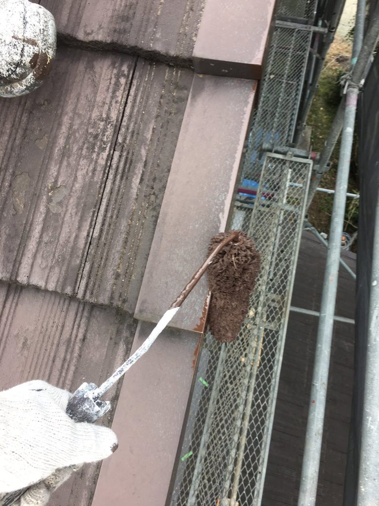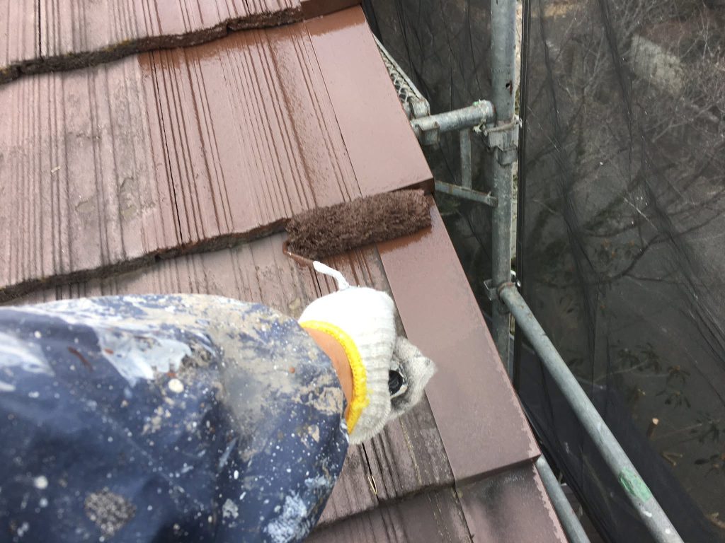大変お世話になります。本日な朝より乗り込ませて頂き屋根小口ローラー塗りからスタートしております。