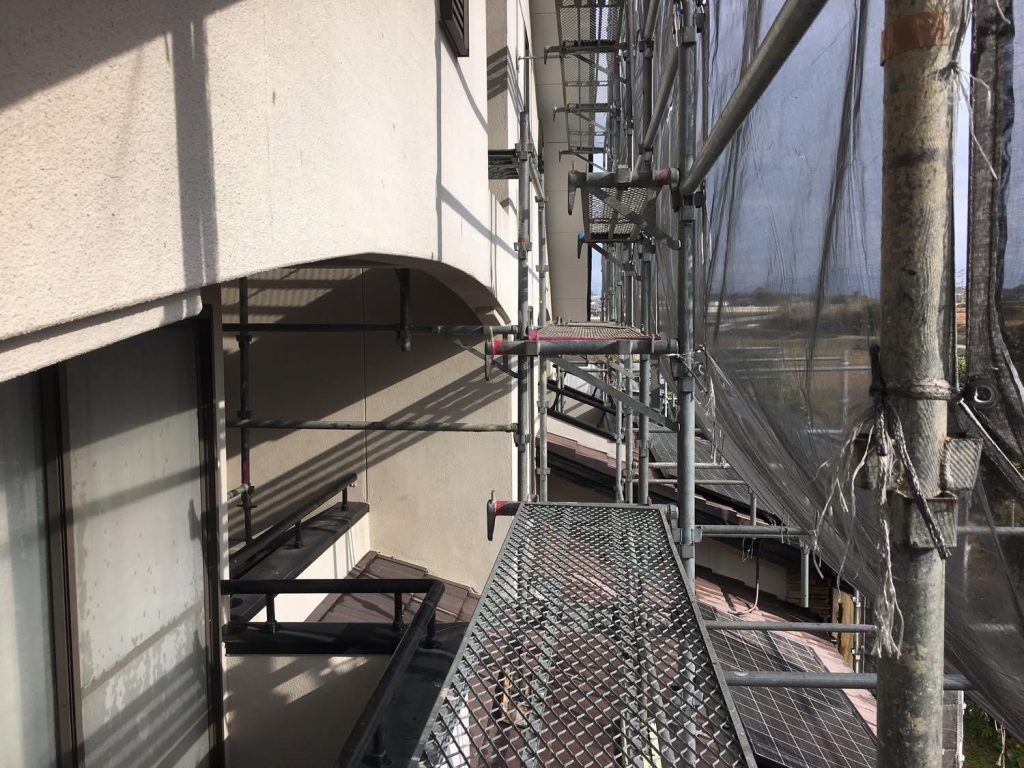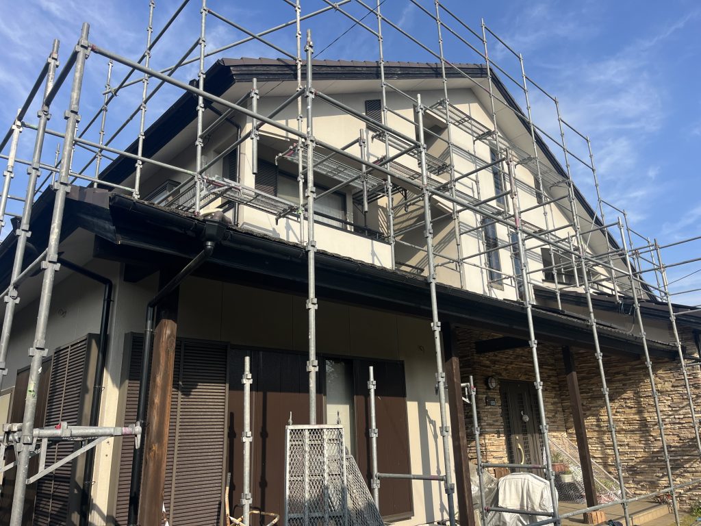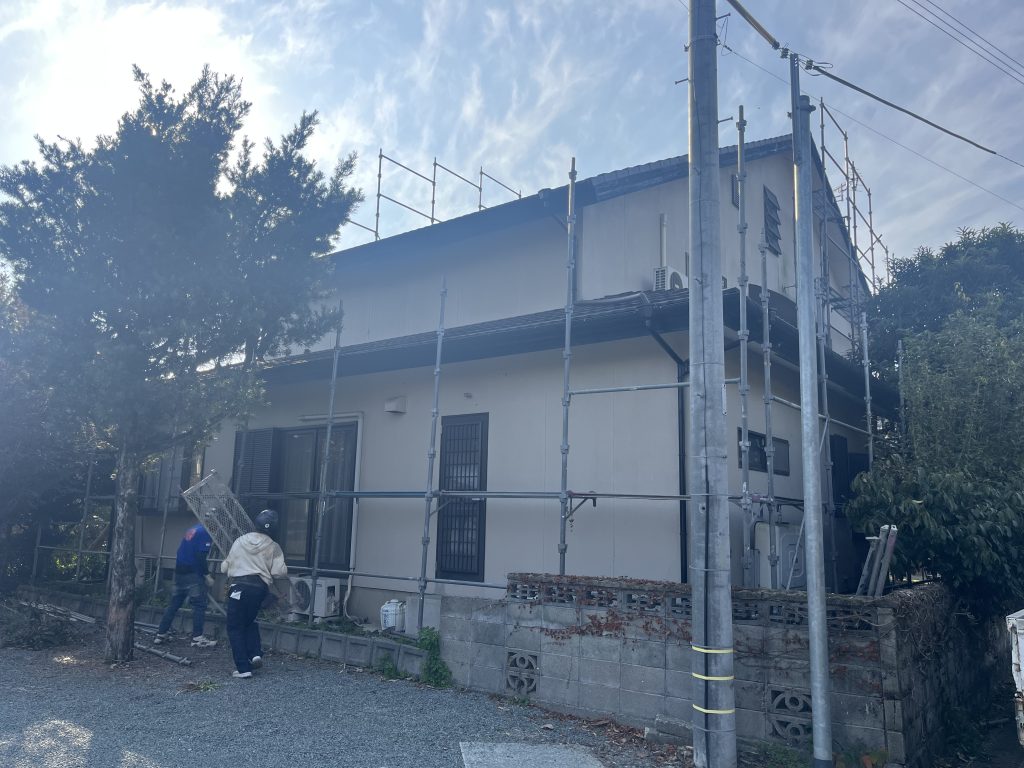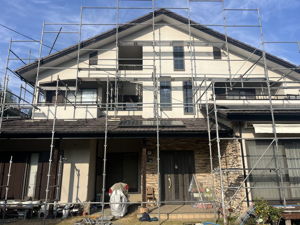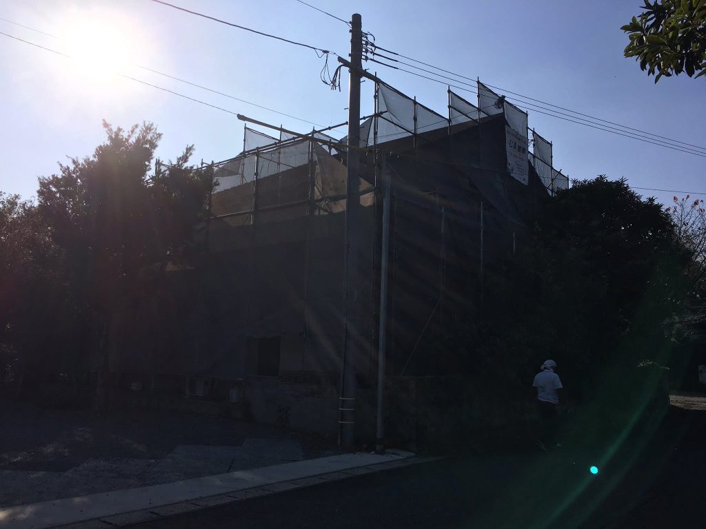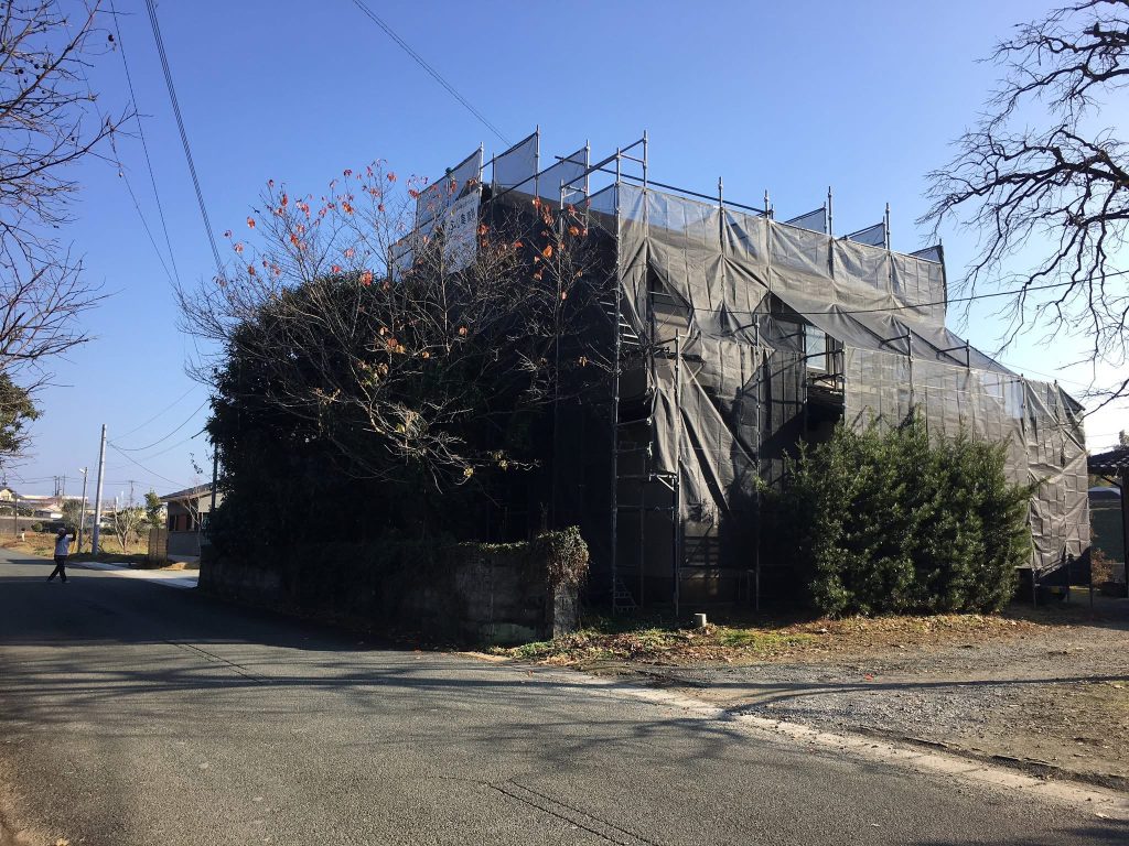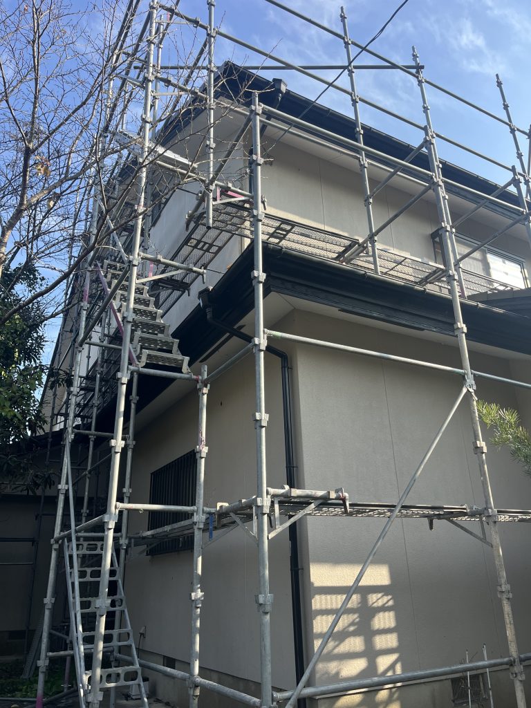 合志市 O様邸 足場組立、飛散防止ネット張り作業