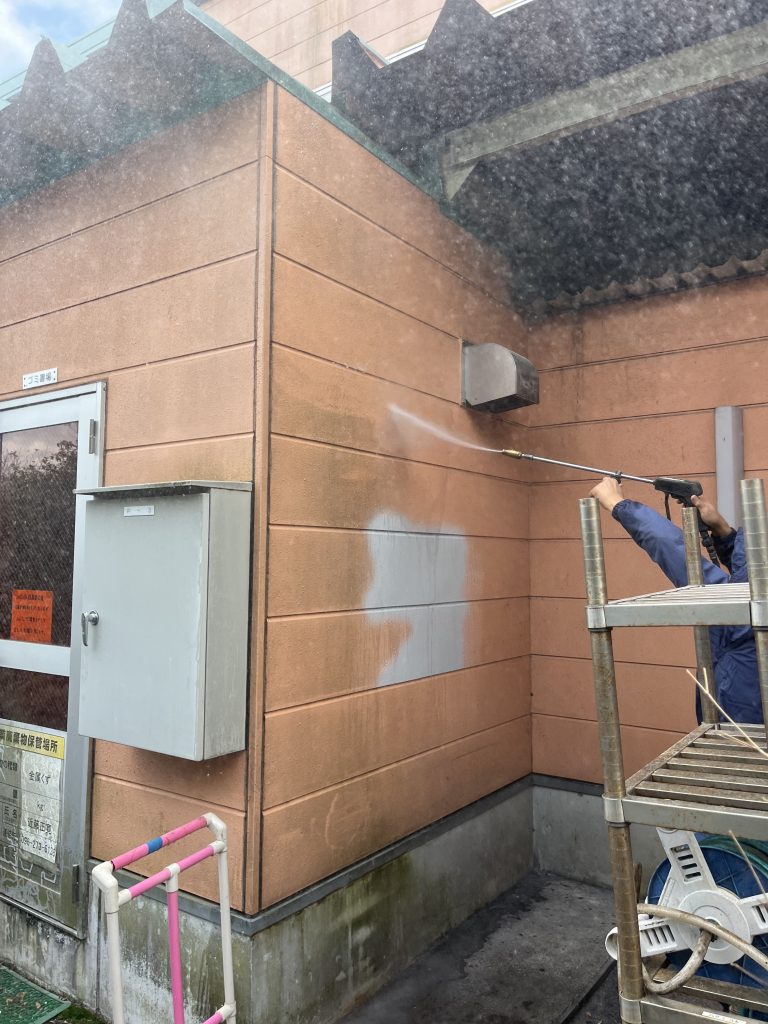 本日は朝より乗り込ませて頂き高圧洗浄を行なっております。