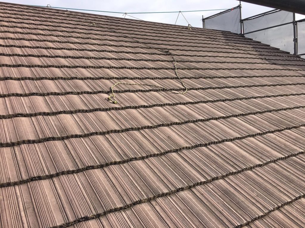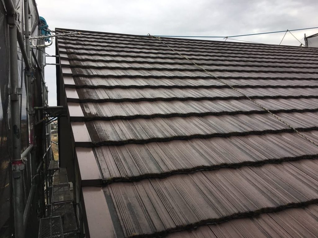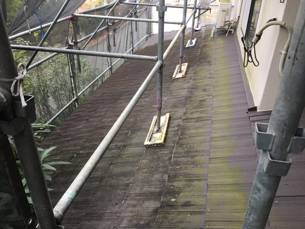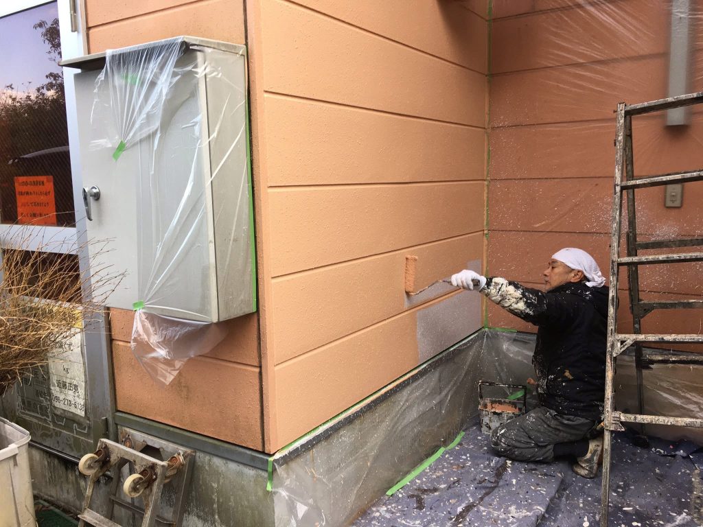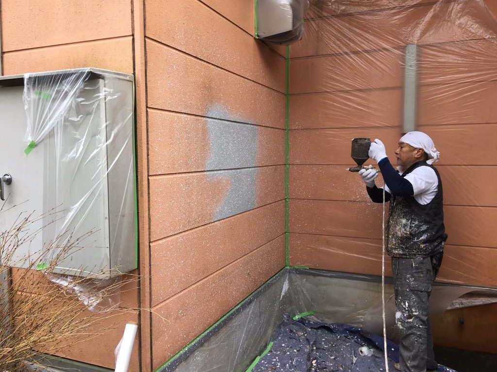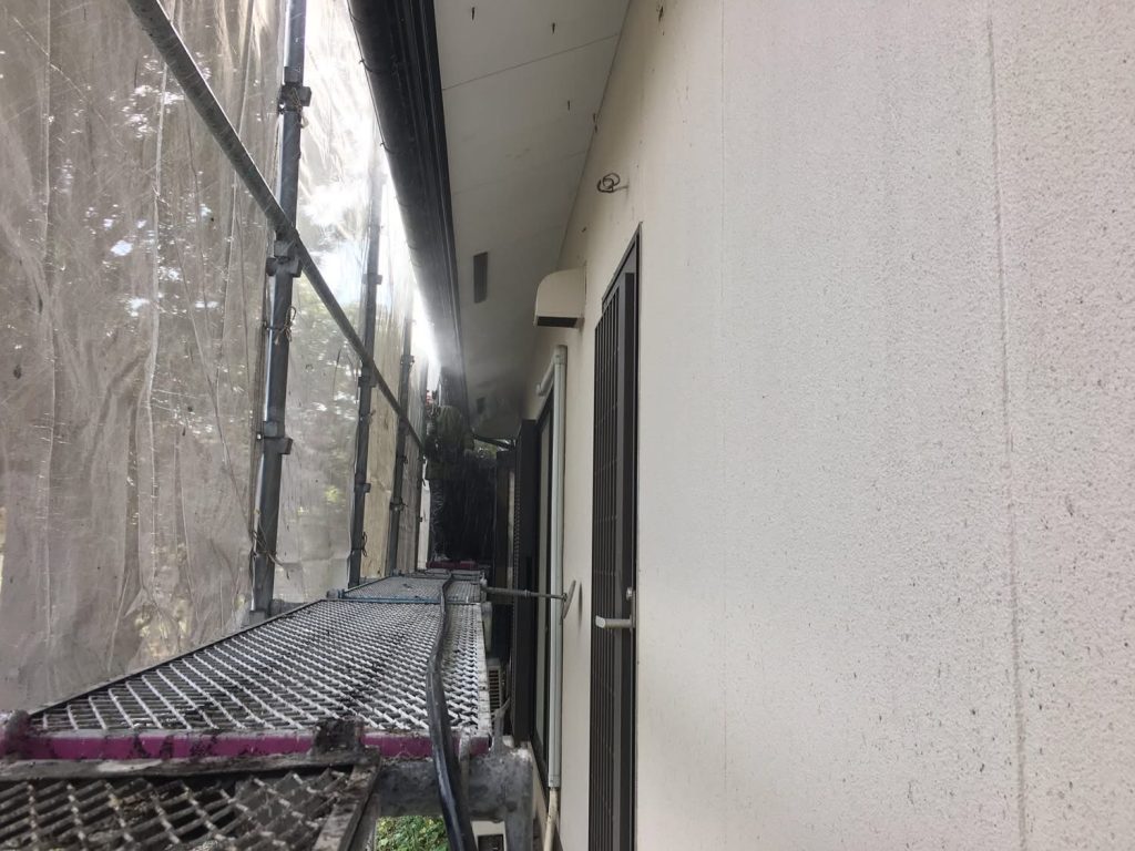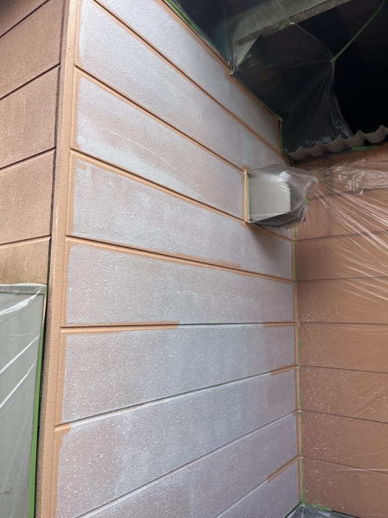 乾燥後下塗フィラー塗布。乾燥後水性シリコン半艶にて現地既存色へ調色、塗布しております。