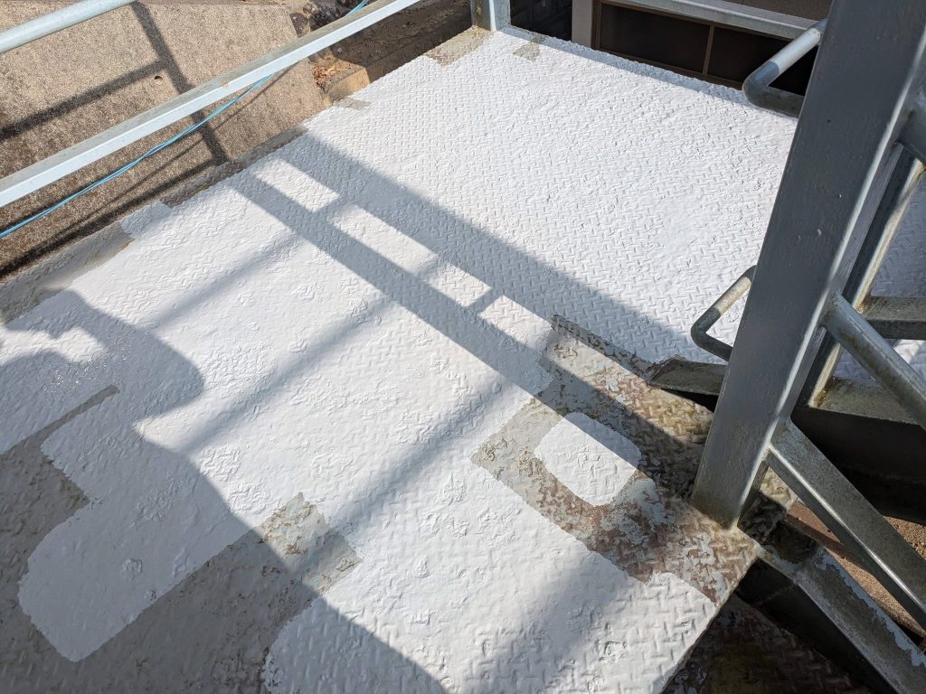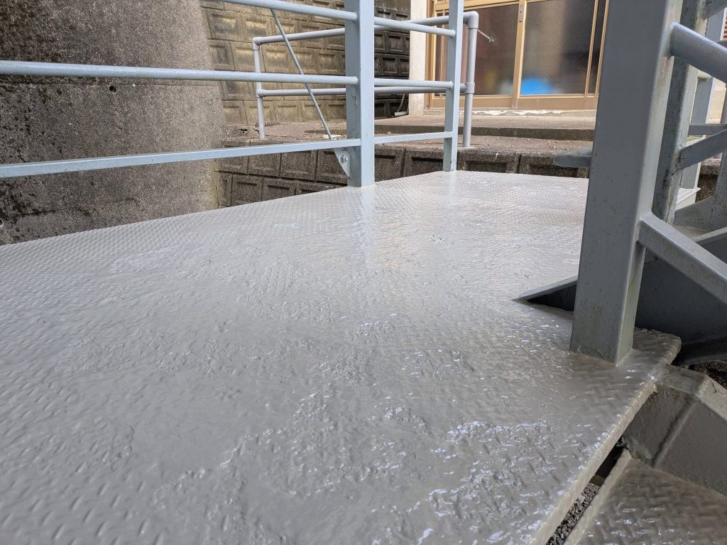 その後錆止め塗布を行い、二液型シリコン樹脂塗料を塗布しております。