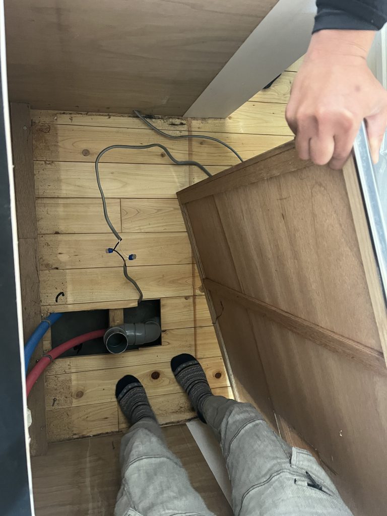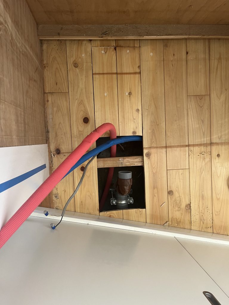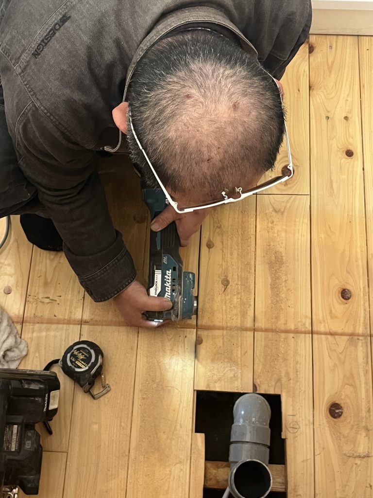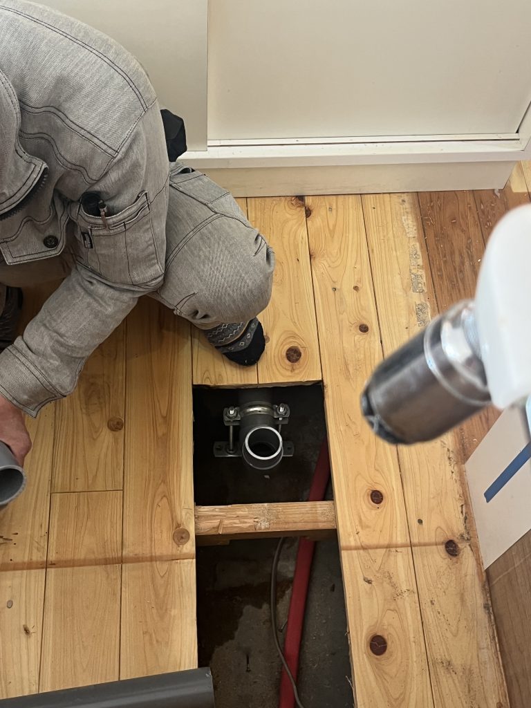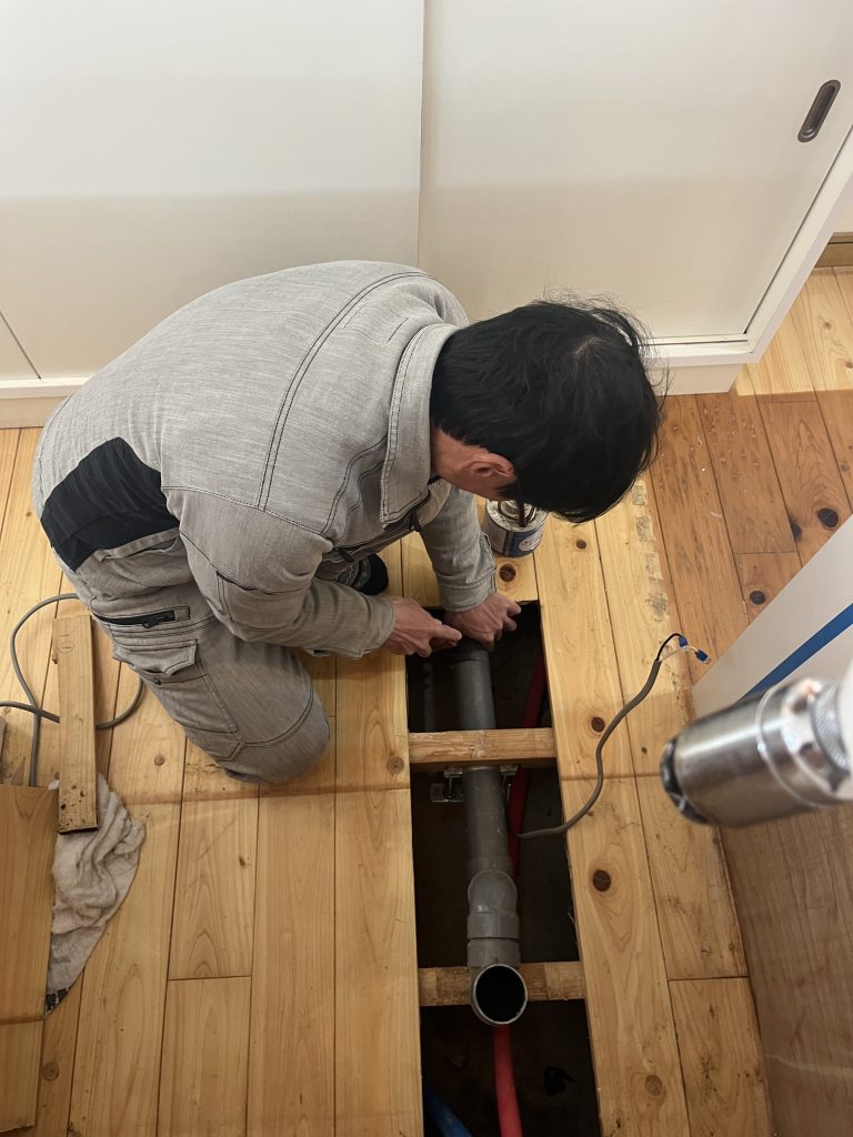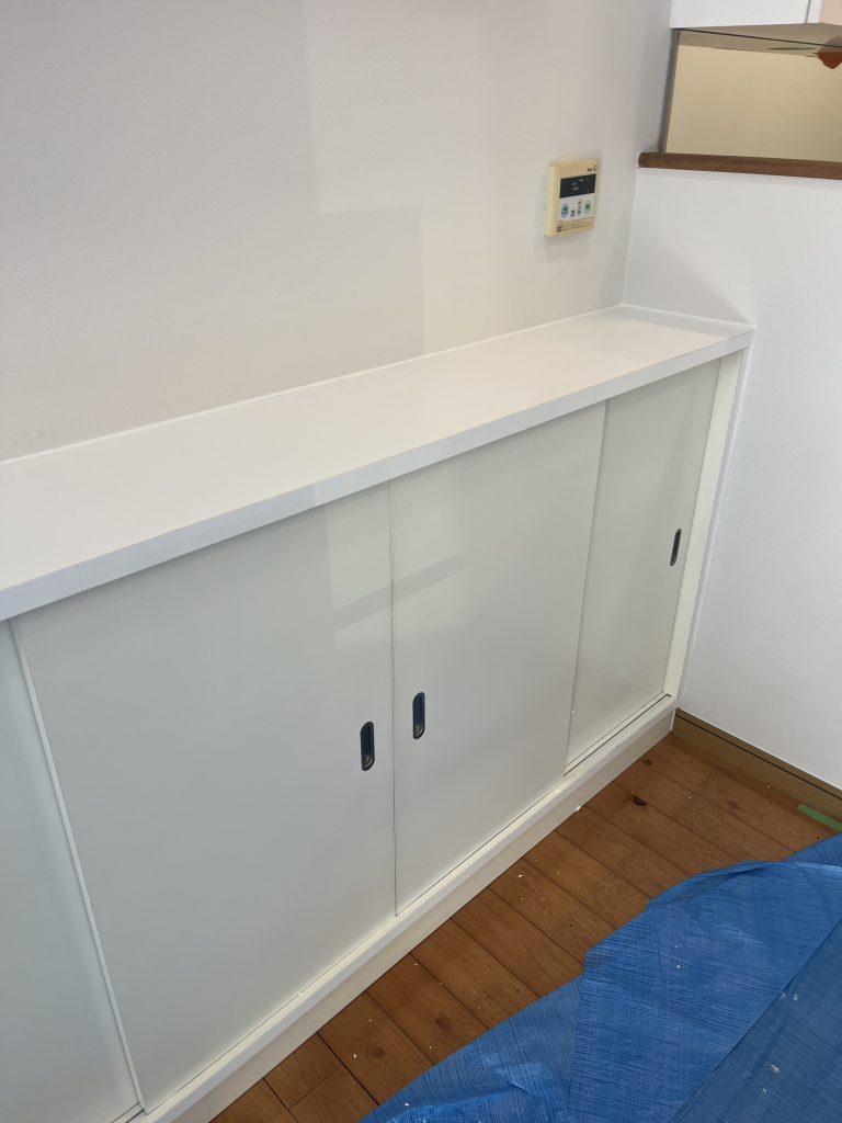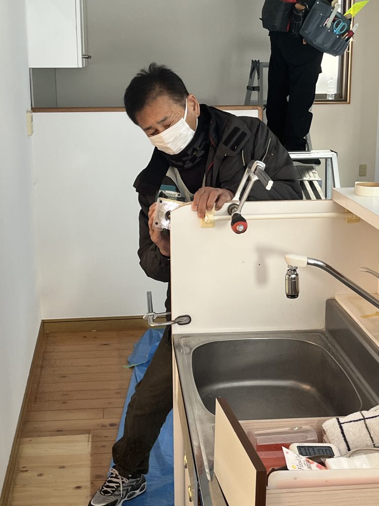器具取付後、下部ブルーシートバラしなど行なっております。
