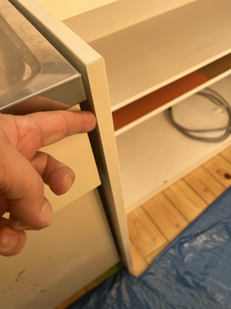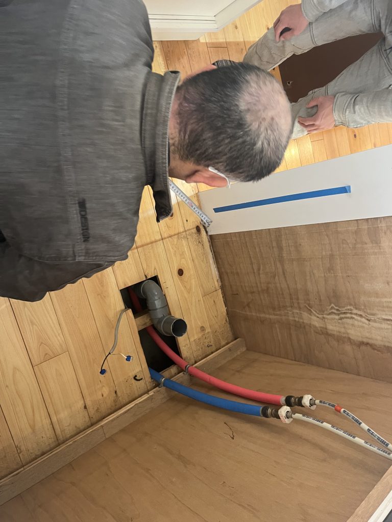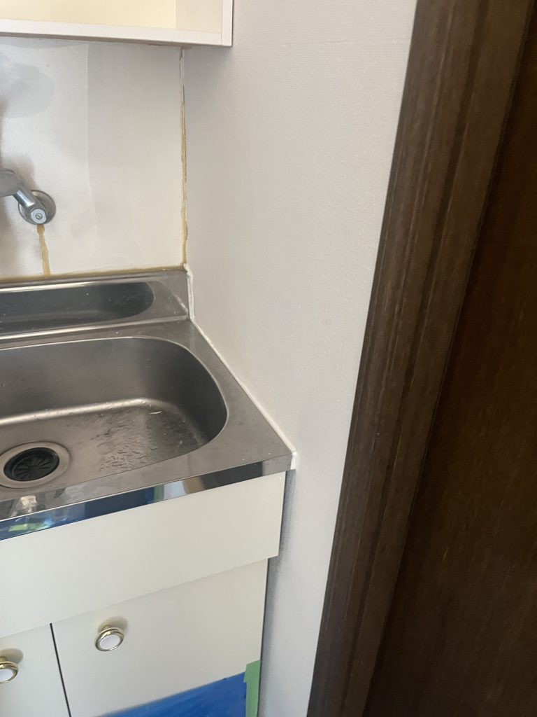 大変お世話になります。本日は朝より乗り込ませて頂き洗面台、棚、シーリング充填からスタートしております。