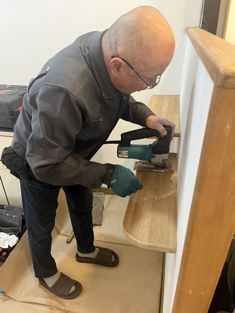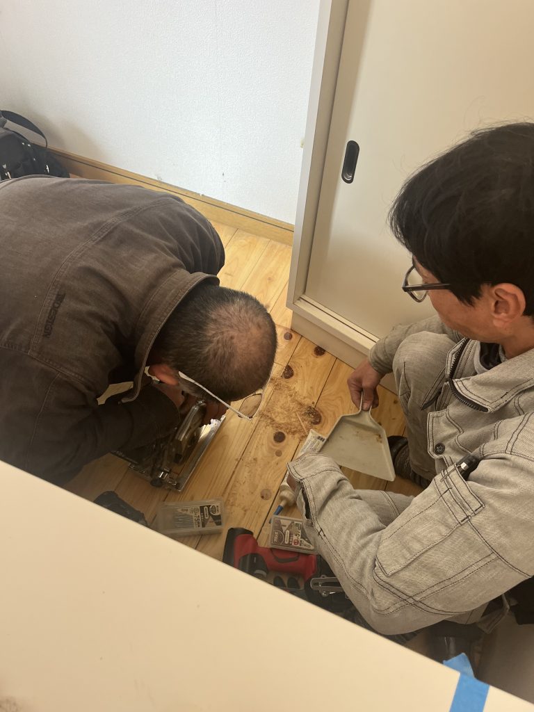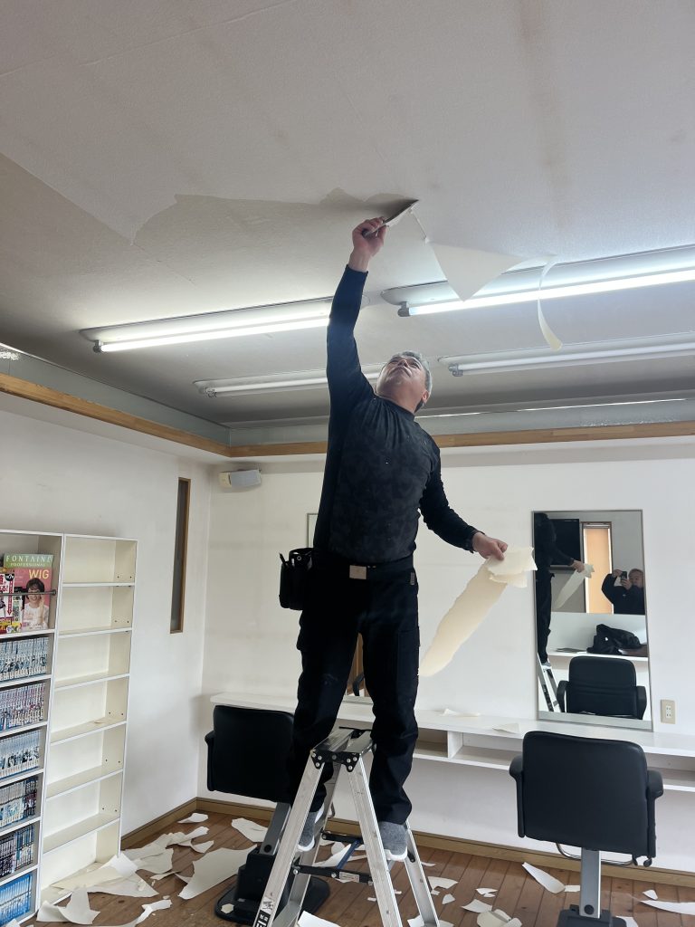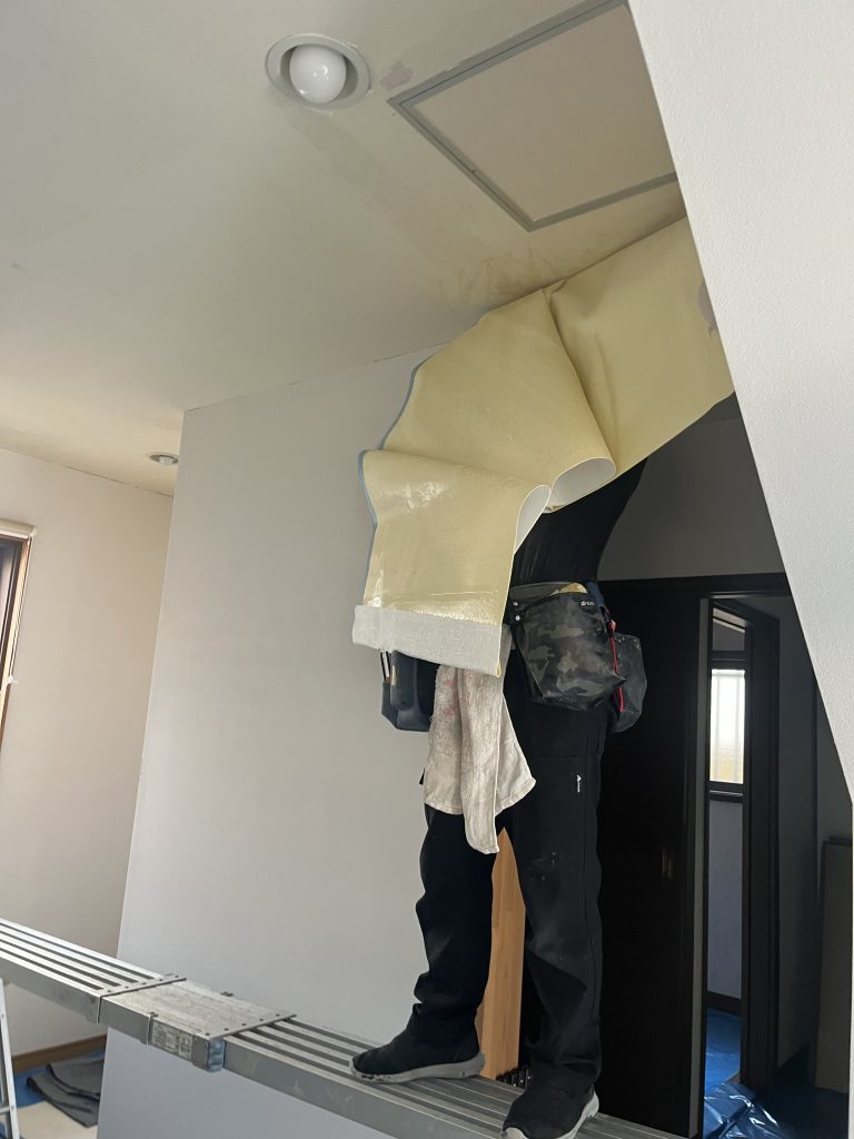 大変お世話になります。本日は朝より乗り込ませて頂き、クロス屋さん既存クロスバラし、