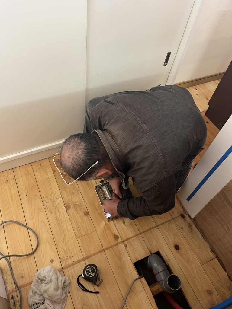 大変お世話になります。本日は朝より乗り込ませて頂き清掃からスタートしております。