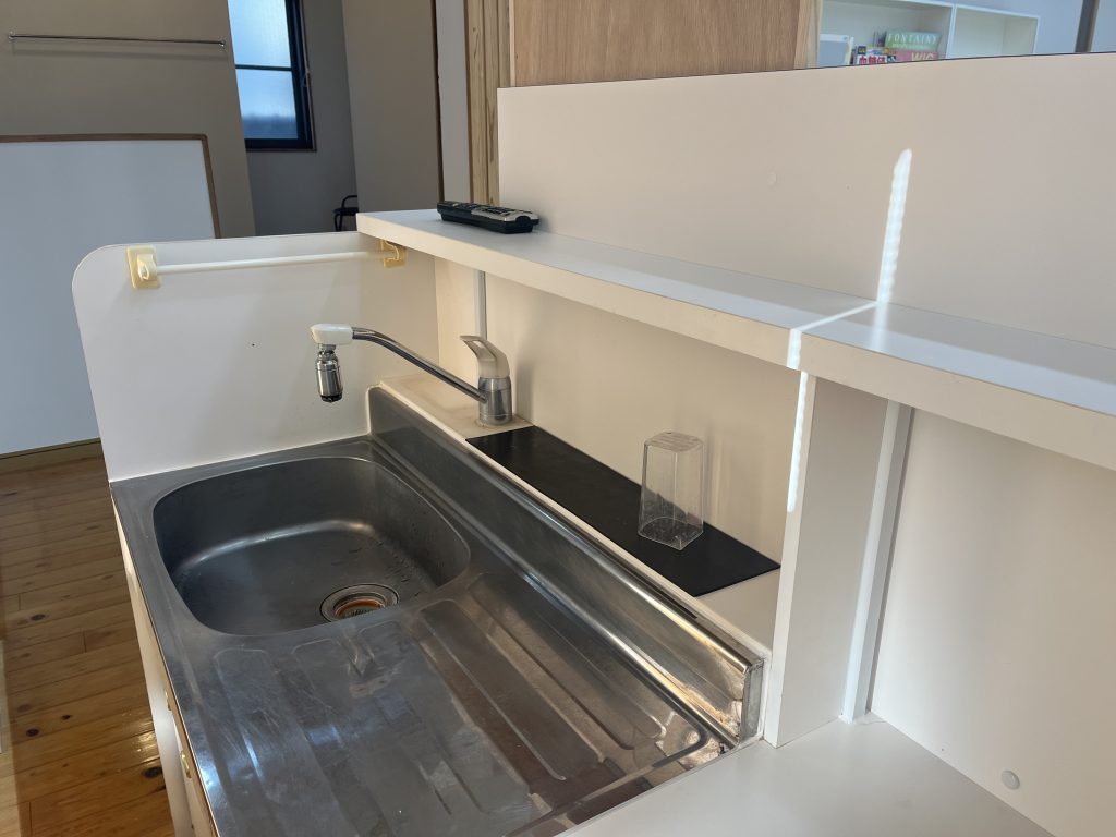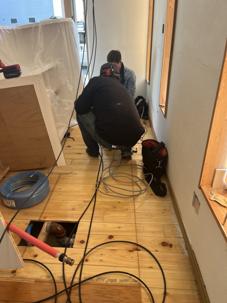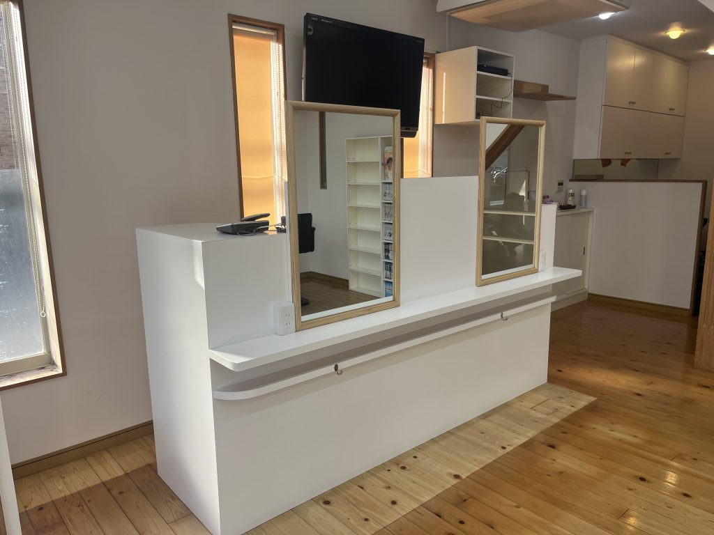 電気屋さんが配線下地処理、家具屋さんカウンター造作、棚持ち帰り、設備屋さん配管造作など行なっております。